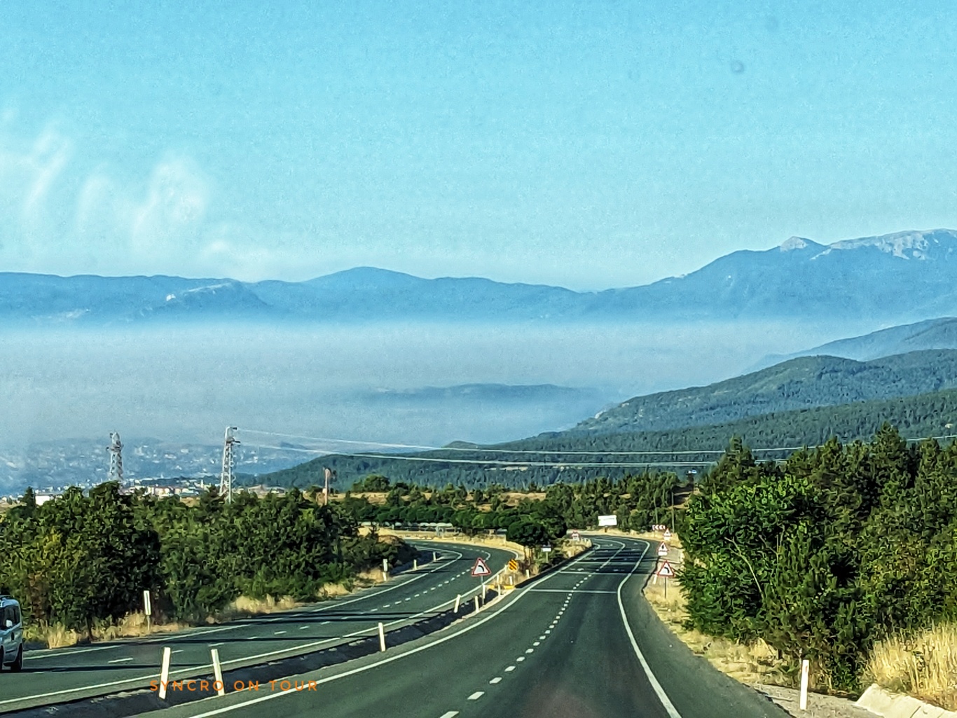 Heute sind wir wieder ganz früh aufgestanden und losgefahren. Ziel war eigentlich ein See bei der Stadt Bolu, die für ihre vielen Seen berühmt ist. Wegen der Waldbrände rund um Karabük mussten wir diesen Plan aufgeben. Es hingen überall große Rauchschwaden in der Luft. Der sonst so blaue Himmel und die ganze Luft waren eine einzige graue Wolke.