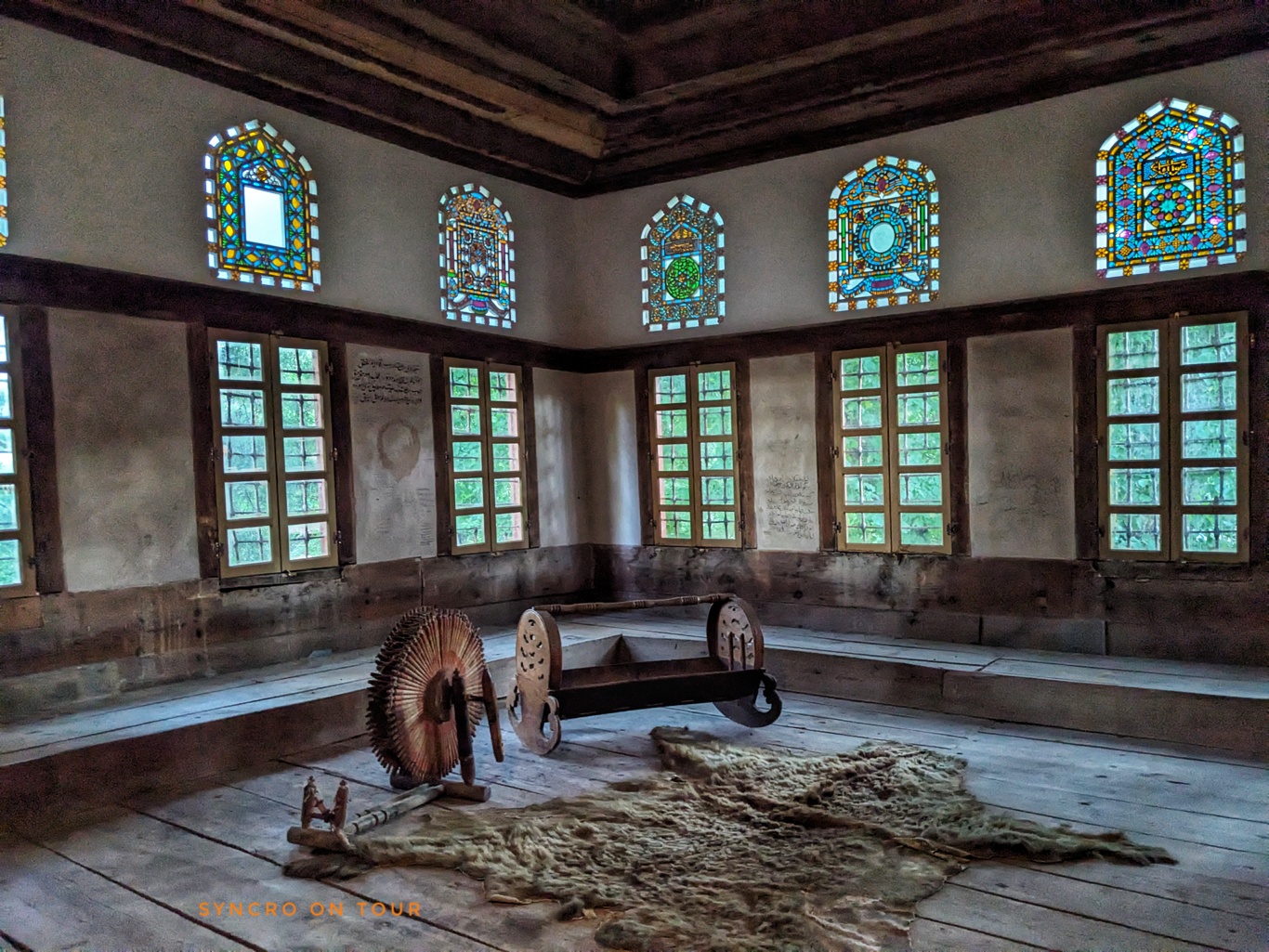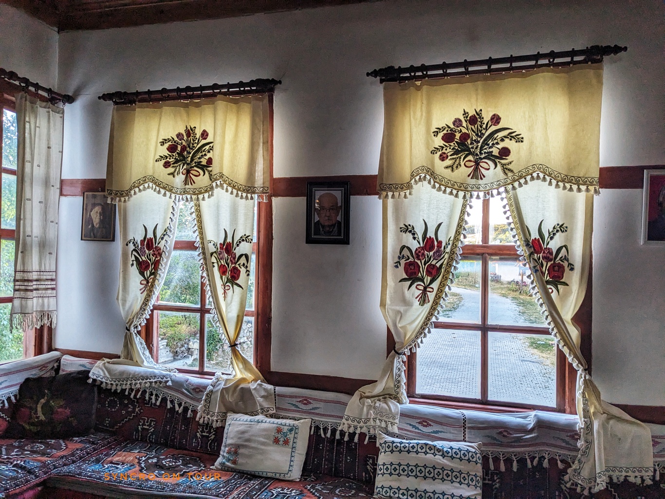 Nach dem Essen gab es noch eine Führung im 400 Jahre alten Bauernhaus. Es ist ein ganz landestypischer Konak – eine Villa, wie wir sie auch in Safranbolu oder zuletzt in Amasya gesehen haben. Die Räume mit ihren wunderschönen Holztüren sind alle original, wie uns der alte Bauer erklärte, der uns die einzelnen Räume zeigte.