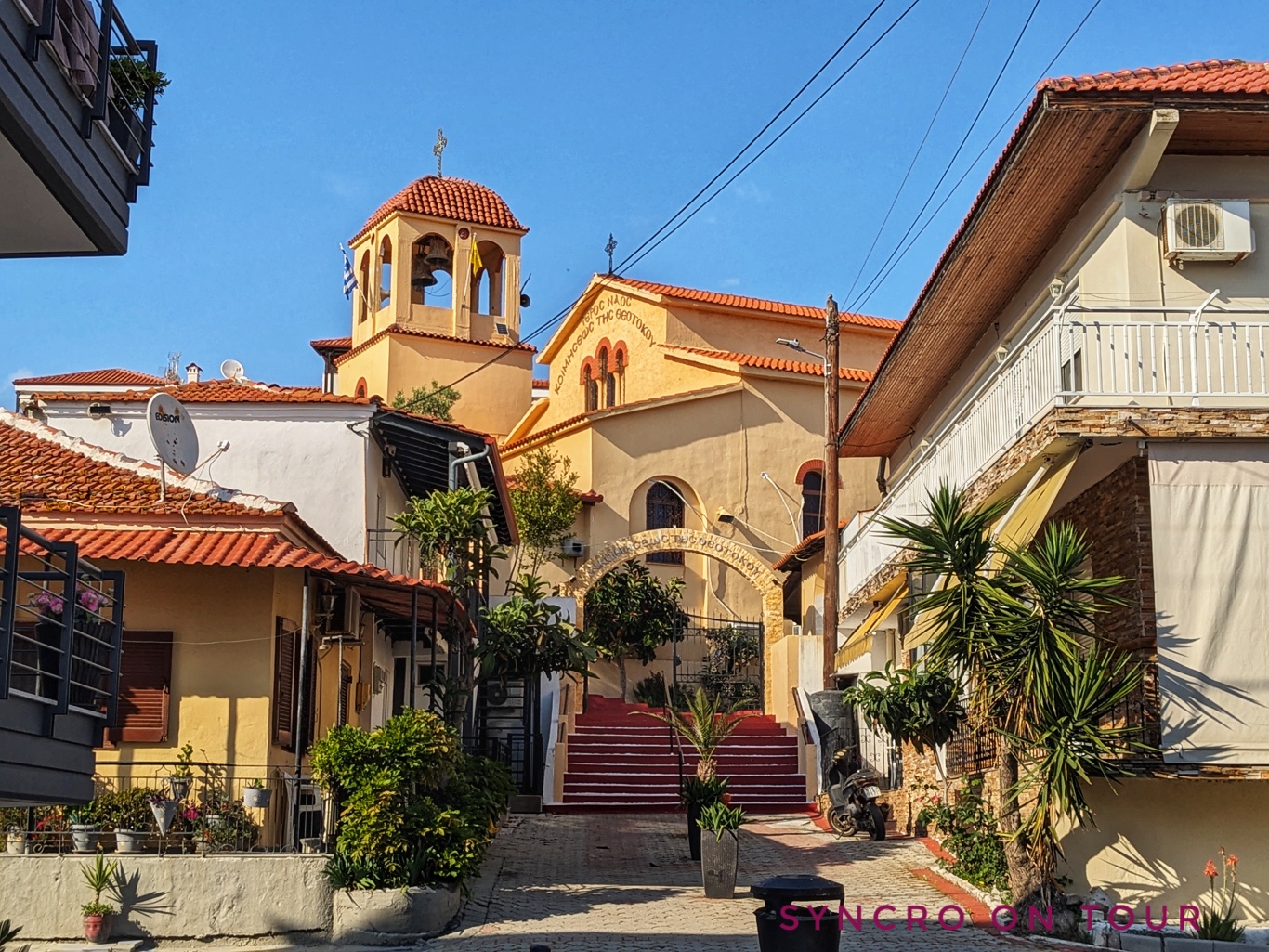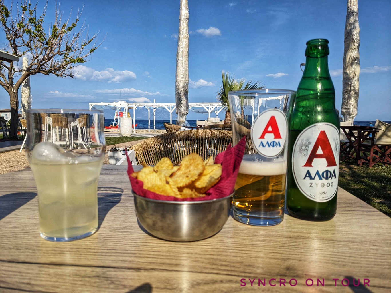Zu Mittag waren wir im Städtchen Ormos. Hier gibt es einen kleinen Hafen, eine Badebucht, schöne Felsen mit Aussicht. Von hier fahren zweimal am Tag Schiffe ab, die eine Rundfahrt zu den Klöstern vom Berg Athos machen. Natürlich dürfen die Passagiere nur gucken und nicht aussteigen. Für Athos brauchen Männer eine Genehmigung und Frauen dürfen gar nicht drauf. Pfff – „Die autonome Mönchsrepublik beherbergt insgesamt rund 2.000 Mönche und 20 Großklöster sowie diverse kleinere Klöster, die alle Teil des UNESCO-Weltkulturerbes sind.“ (—>)