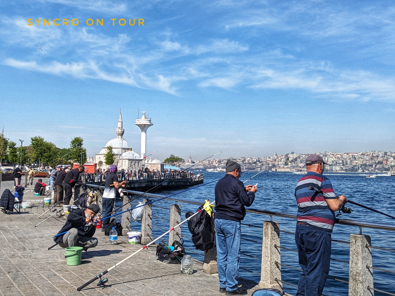 In Üsküdar haben wir uns etwas umgesehen. Vor allem haben wir das rege Leben am Kai genossen. Wir sind fasziniert von den vielen Anglern, die, wie überall in der Stadt den ganzen Tag kleine Fische angeln. Das tun sie mit langen Angelschnüren, an denen nur ein glänzendes Bleigewicht hängt. Eins davon hat mich beim Auswerfen am Kopf getroffen. Das gibt eine schöne Beule. Ab jetzt mache ich einen größeren Bogen um die Angler.