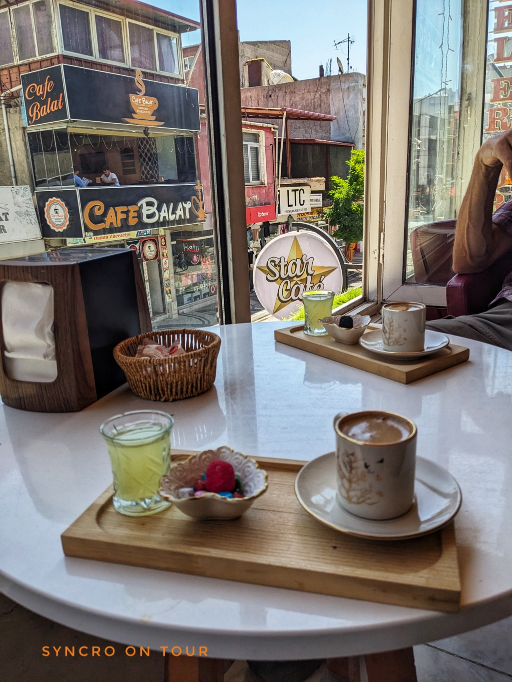Highlight des Vormittags war der türkische Kaffee in einem kleinen Café im zweiten Stock mit Blick auf die Einkaufsstraße. Auf dem Basar haben wir mal wieder nur geschaut. Frische Aprikosen haben wir später in einem anderen kleinen Laden gekauft.