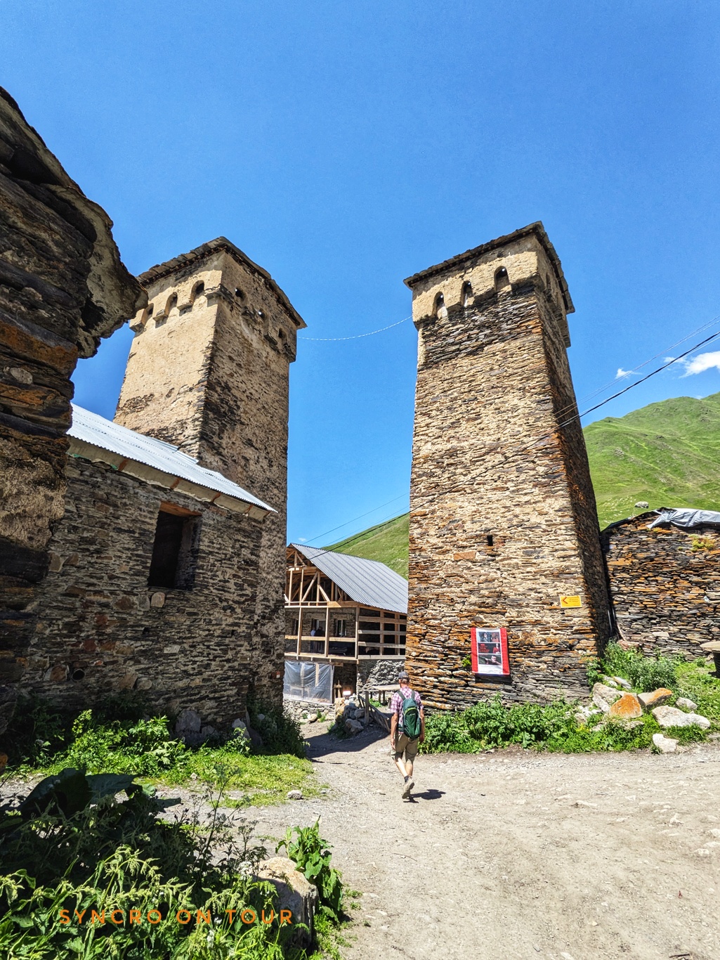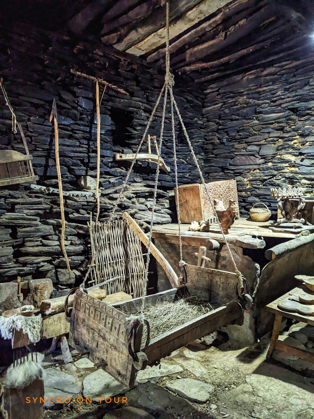Dabei entdeckten wir ein kleines Museum. Gigo zeigte uns die Sammlung von Haushaltsgegenständen im alten Haus seiner Vorfahren. Er erklärte uns, wie die Familien zusammen mit ihren Tieren in einem großen Raum wohnten. Auch die Feuerstelle zeigte er uns. Im großen Dachboden wurde das Futter für die Tiere aufbewahrt. Außerdem gehörte früher zu jedem Haus ein großer Wehrturm, in dem sich die Familie bei Angriffen, z.b. durch die Mongolen, verschanzen konnte. Und zwar durchaus über Wochen.