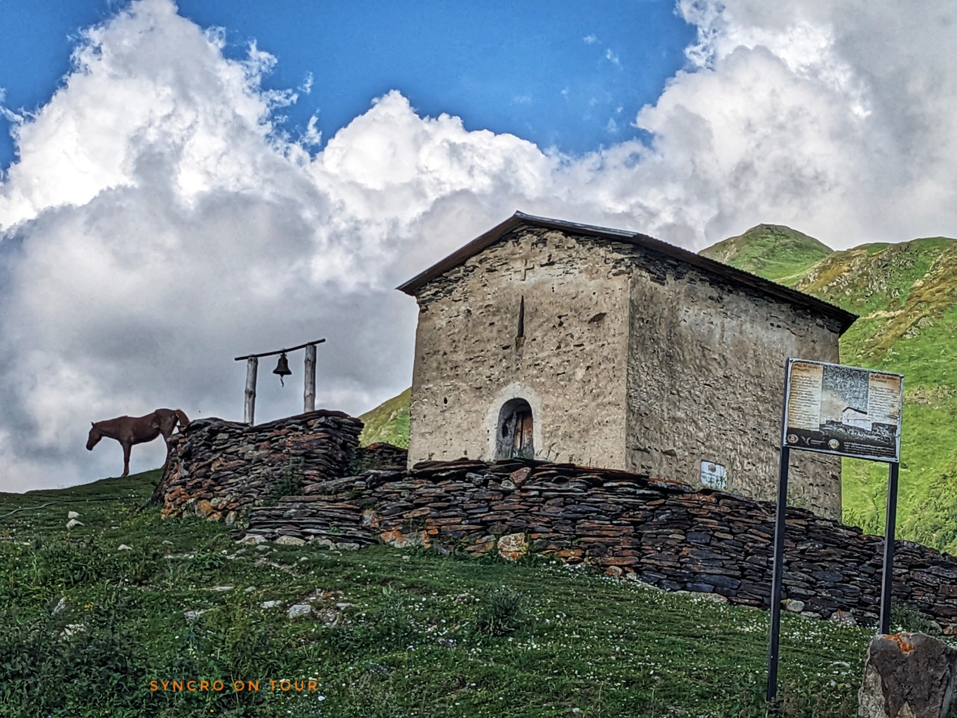 Der Film, der viele berühmte Preise gewonnen hat, ist von 2017 und beschreibt eine Begebenheit aus dem Jahr 1988. Es ist die Zeit nach dem Zusammenbruch der Sowjetunion und des georgischen Bürgerkriegs. Der Film spielt genau hier in Svanetien und wurde in Usghuli und der umliegenden Landschaft gedreht. Er beschreibt das Drama einer arrangierten Ehe, die nicht zustande kommt und den Verstrickungen aus Tradition, Blutfehden und Unterdrückung von Frauen noch in der Neuzeit in dieser sehr entlegenen Gegend. Es ist spannend, im Film die Häuser und Orte zu sehen, die wir noch am Morgen besucht haben. Es ist ein sehr bewegender Film mit tollen Landschaftsaufnahmen, eindrücklichen Szenen der zwischenmenschlichen Beziehungen. Ein harter Film, der die thematisierte Brutalität nie direkt darstellt. Tolle Schauspieler, die in den vielen Nebenrollen wohl zum größten Teil aus der Gegend stammen.