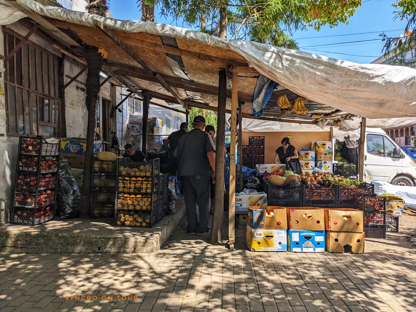 Das liegt nicht nur an den schon am frühen Morgen hohen Temperaturen, sondern auch an der Art der Häuser und Gärten. Hier gibt es ausgedehnte Plantagen mit Haselnüssen und anderen Früchten und Gemüsesorten. Es wachsen hohe Bäume am Straßenrand, darunter Palmen und Eukalyptus, aber auch Ahorn, Eichen, Buchen und Walnussbäume.