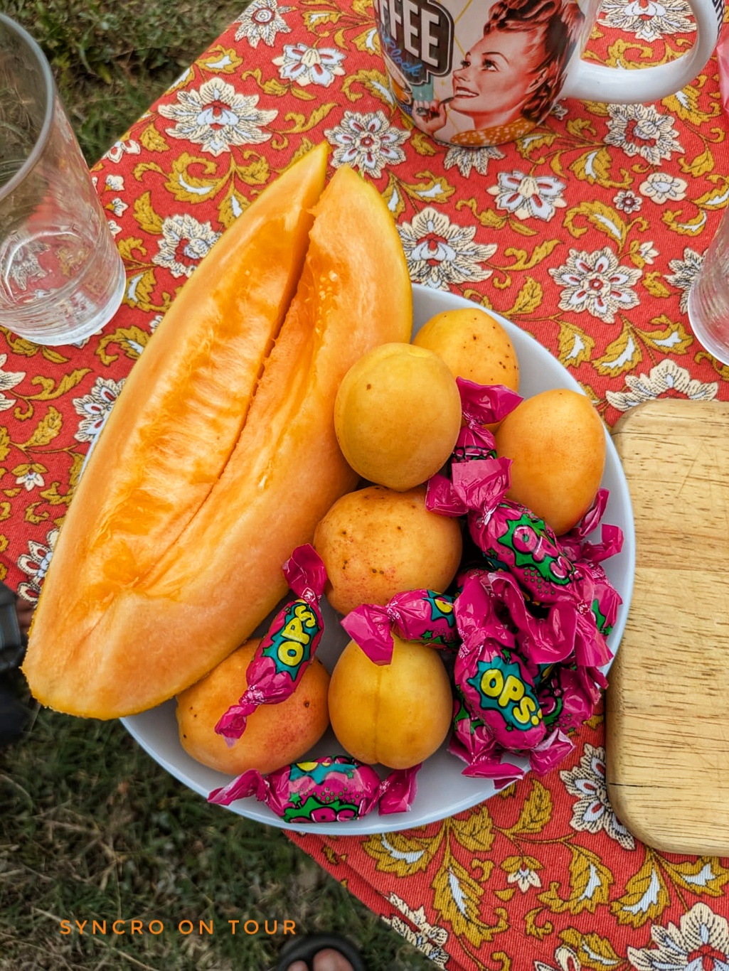 Nachdem sie uns die Dusche, die Toilette und die kleine Küche mit Waschmaschine gezeigt hat, brachte sie uns zum Einstand einen Teller mit Früchten und Bonbons. Ein tolle Geste!