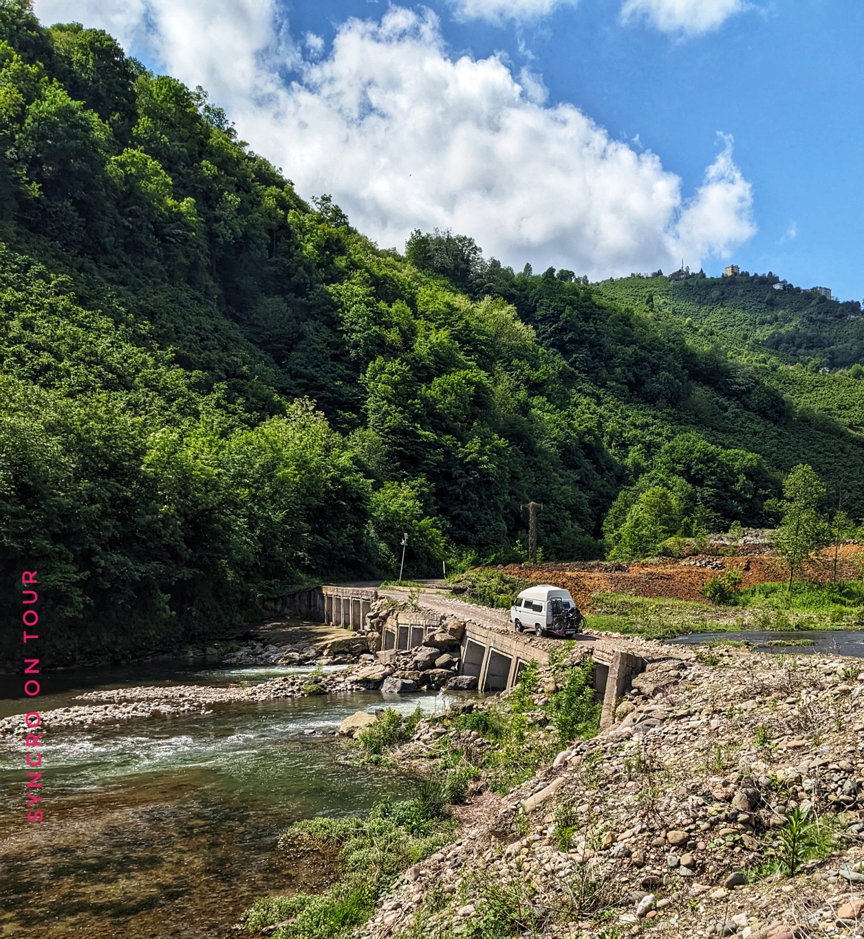 Immer wieder sehen wir schwere Lastwagen und Baustellen für den Straßenbau, so wie in der ganzen Türkei bisher. Unsere Straße ist zu Anfang noch ungeteert und teilweise eng und holprig, dafür aber immer nah am Fluss. Später kommen wir in den Genuss der schon fertig ausgebauten Schnellstraße, die zum Glück den Charakter des wunderschönen Flusstals nicht zerstört hat.