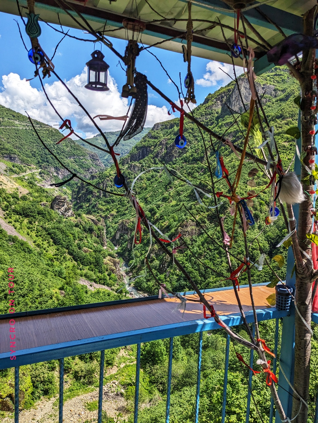 Unterwegs kamen wir zu einer kleinen Gaststätte mit einer Aussichtsterrasse hoch über dem felsigen und teilweise sehr engen Tal des Flusses. Die Aussicht war toll. Hier konnten wir wieder einmal einen leckeren türkischen Kaffee genießen.