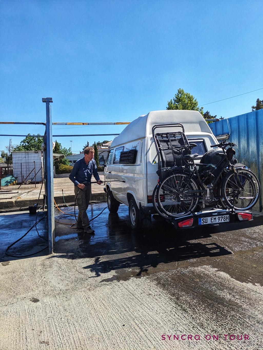 Kurz vor der Einreise in die Türkei hat Michael unseren Camper in einer Waschanlage für 50 cent vom Reisedreck befreit. Einmal Hübschmachen bitte.