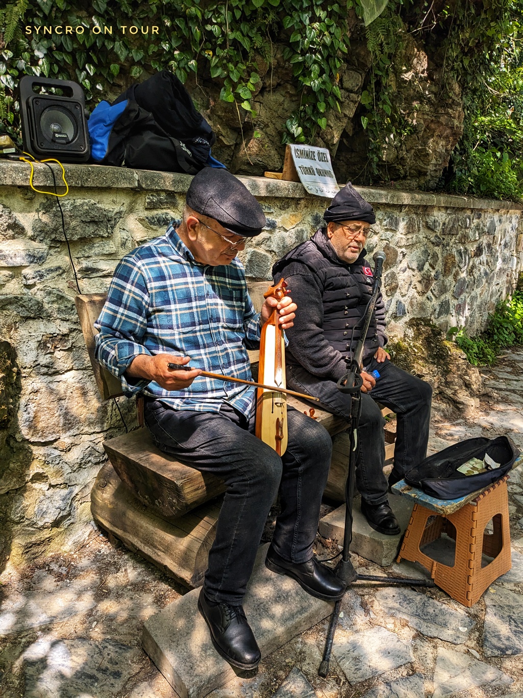 Am Horizont sehen wir eine Kette schneebedeckter Berge, die wir wohl demnächst einmal erkunden dürfen. Kaum hatten wir uns zu einem Kaffee vor den Bus gesetzt, hielt ein junger Mann auf dem Fahrrad an. Wir lernten Osman kennen, der sehr gut Deutsch spricht. Er ist in Deutschland geboren, musste aber irgendwann Deutschland verlassen. Die Umstände konnten wir nicht näher ermitteln. Wir luden ihn zu einer Tasse Kaffee ein, die wir aber erst neu aufbrühen mussten. In der Wartezeit wollte Osman das Fahrrad, das er sich nur ausgeliehen hatte, zurückbringen. Wir hatten ein sehr nettes Gespräch über Allah und die Welt, insbesondere das Leben in der Türkei. Er erzählte uns, dass er zwar eine Wohnung in Trabzon hätte, aber in einem Restaurant in den Bergen arbeite, etwa eine Stunde entfernt. Am Ende unseres Gesprächs lud er uns ein, ihn dort zu besuchen. Er schwärmte vom Essen und der tollen Aussicht. Wir versprachen, ihn morgen zu besuchen. Wie wir jetzt wissen, müssen wir dazu fast bis zum Felsenkloster zurückfahren. Aber versprochen ist versprochen.
