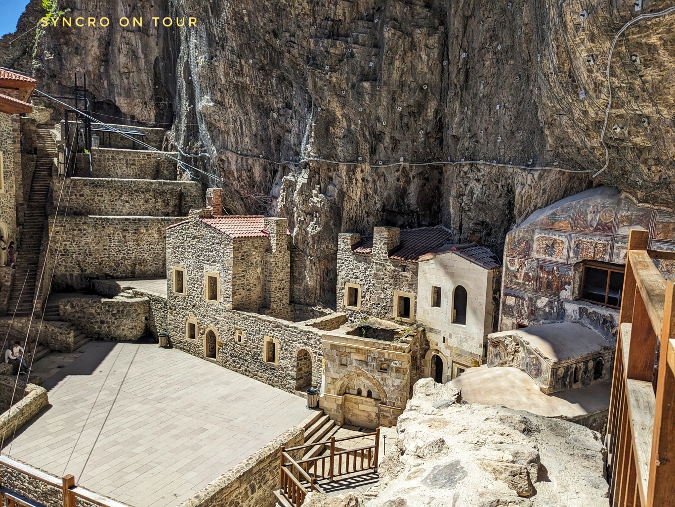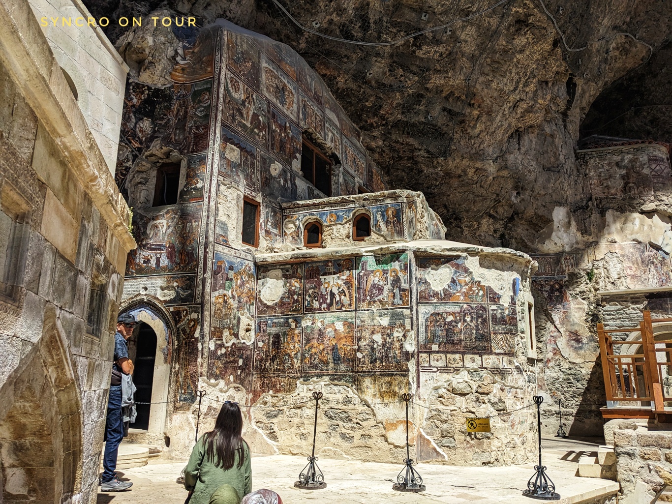 Heute Morgen stiegen wir um 10 Uhr in ein Sammeltaxi (Dolmus), dass uns ganz in die Nähe des ehemaligen griechisch-orthodoxen Felsenkloster Sumela (Sümela – Meryem Ana – Manastırı) brachte. Die ersten Bauten in einer Höhle hoch über dem Altındere-Tal stammen aus byzantinischer Zeit. Bis 1923 wurde es als Kloster genutzt. Seitdem ist es nur noch ein historisch sehr interessantes Bauwerk.