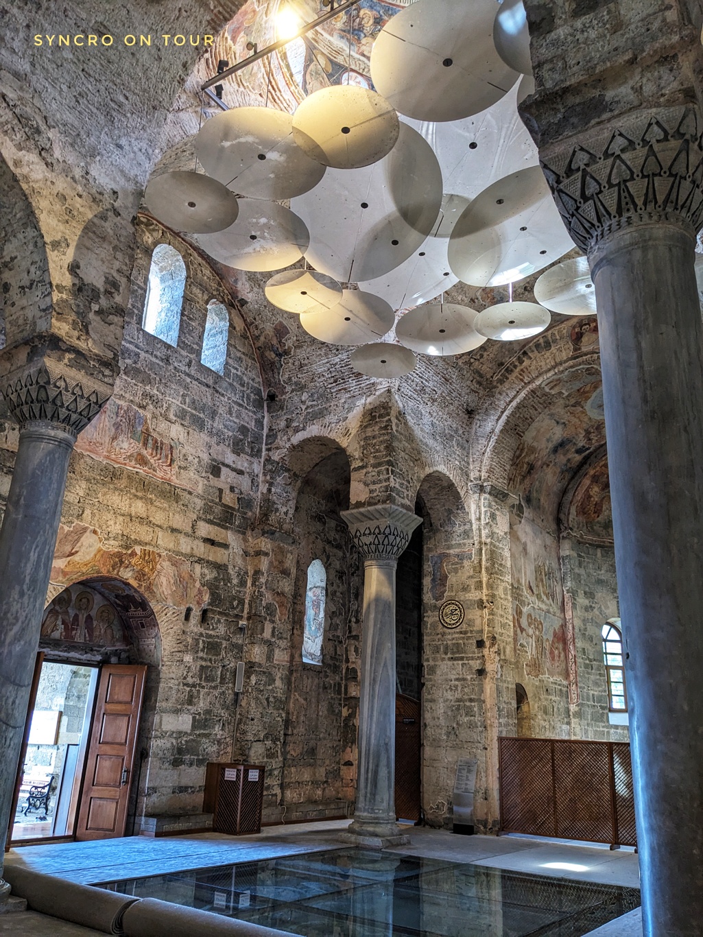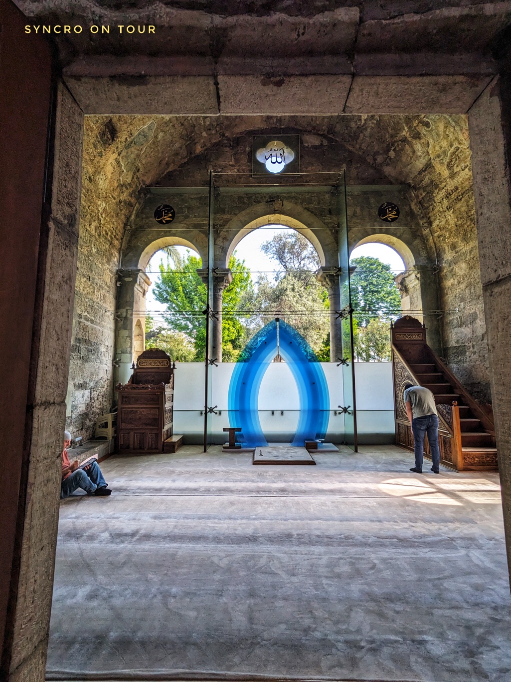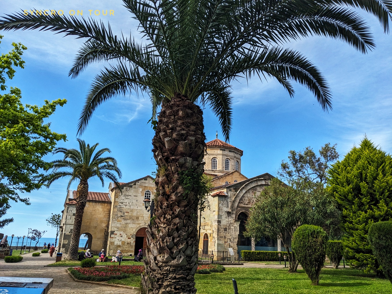 Später sind wir mit den Fahrrädern auf der schönen blauen Fahrradspur in Richtung der Hagia Sofia von Trabzon gefahren. Genau wie ihre große Schwester in Istanbul, ist diese ehemalige orthodoxe Kirche zu einer Moschee umgewidmet worden. Sie liegt auf einem kleinen Hügel in der Nähe des Meeres. Auch das war wieder eine wunderbare Erfahrung. Wir durften auch in die Innenräume. Als wir wieder herauskamen wurde sie gerade für Touristen geschlossen, weil Gläubige beten wollten.