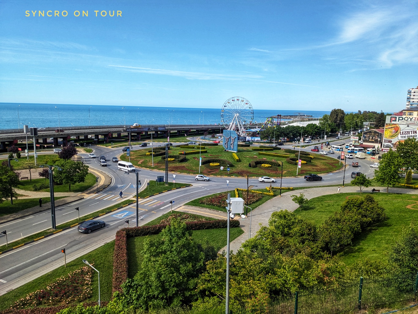 Unsere Mittagspause hatten wir in Maçka. Danach fuhren wir weiter bis Trabzon, wo wir auf einem großen Parkplatz zwischen Stadtzentrum und Meer einen prima Standplatz für die Nacht fanden. Wir stehen jetzt direkt am Grünstreifen, dahinter die Fahrradpiste, dann kommt die Promenade und das Meer.