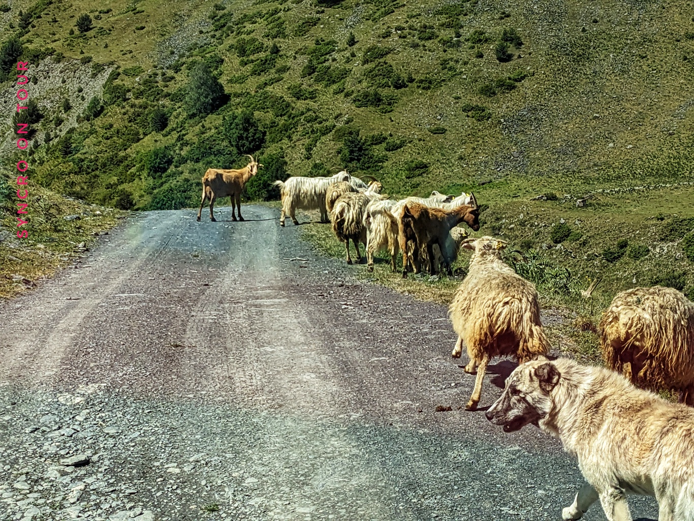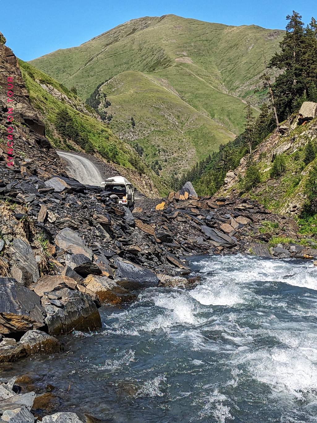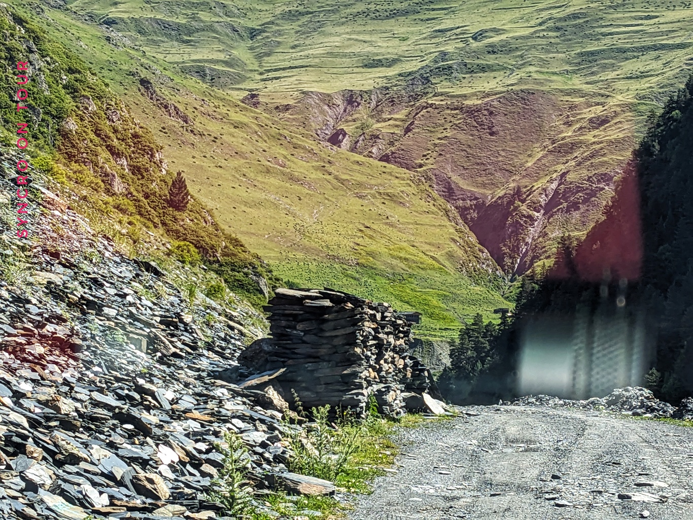 Der Regen von gestern ist Geschichte. Wir kaufen bei der Wirtin zwei der leckeren Teilchen, die wir gestern schon probieren durften. Dann ging’s wieder zurück. Wir sind den ganzen Weg bis unter den Abano-Pass durch Tuschetien gefahren. Morgen wollen wir dann den Rest bis hinunter nach Kvemo-Alvano.