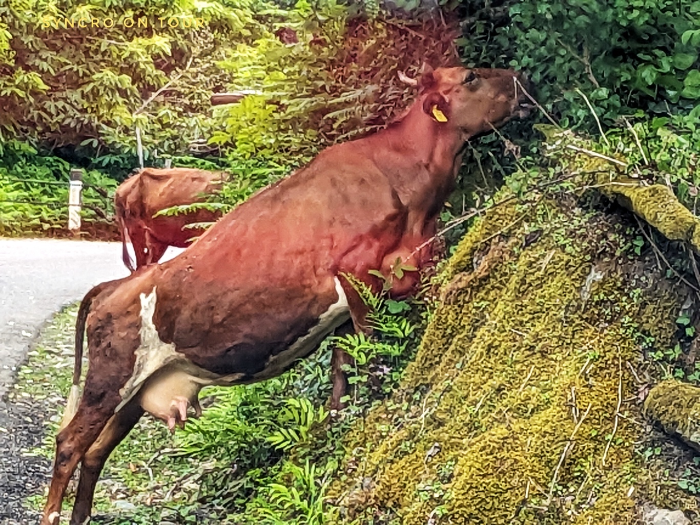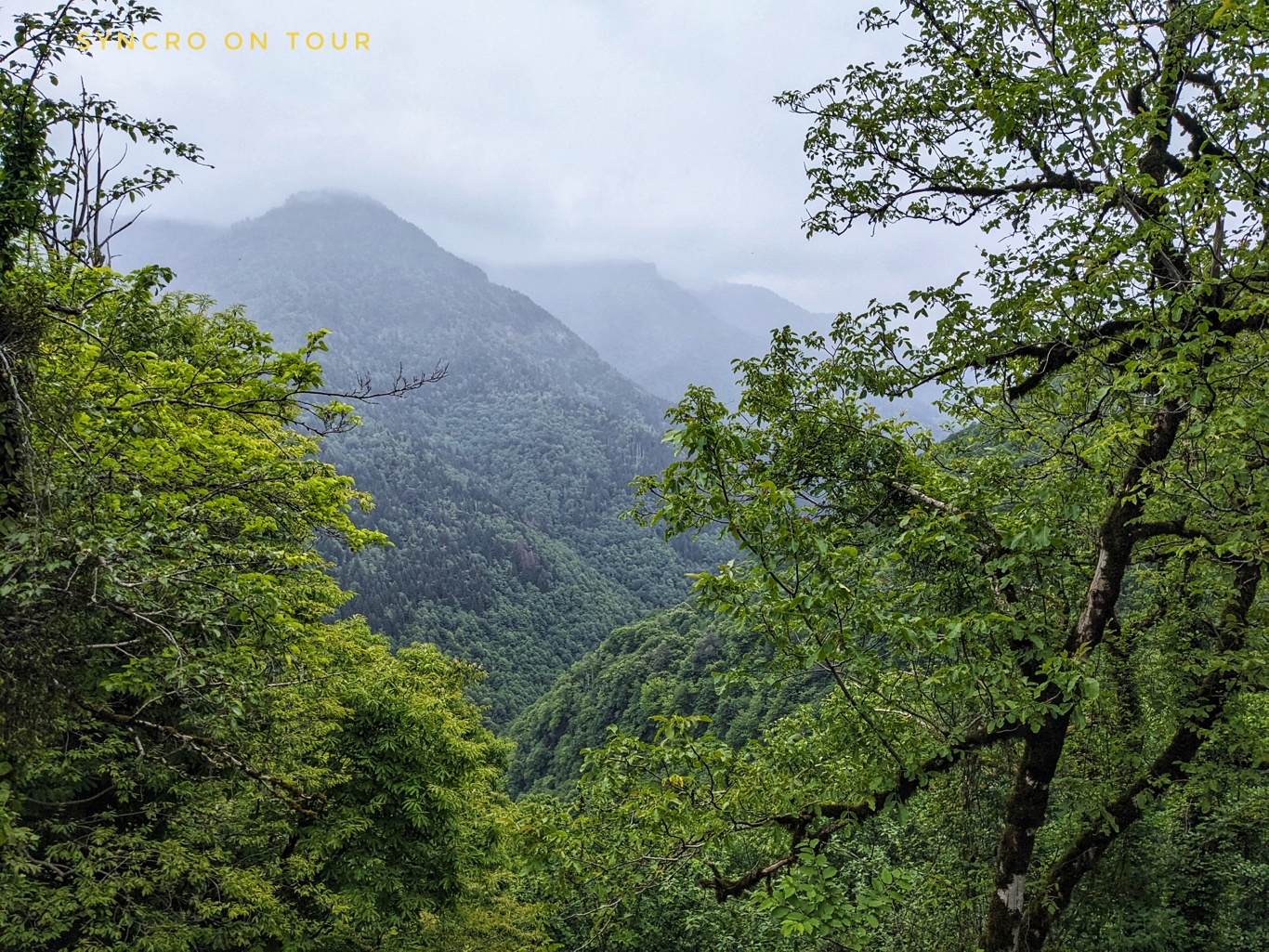 Mittlerweile war es schon später Nachmittag. Wir wollten nun den vorgeschlagenen Nachtplatz anfahren. Wir fanden den Weg, der wie ein Wanderweg immer steil hinauf führt und ziemlich schlammig war, nach dem Regen der letzten Tage. Michael ist zum Glück ein erfahrener Offroad-Fahrer. Nach etwa einer halben Stunde für 6,5 Kilometern haben wir den wirklich schönen Platz mitten im Wald auf etwa 750 Metern Höhe erreicht. Einmal kam eine Herde Kühe vorbei, die vom Bauern nach Hause geführt wurden. Ansonsten nur Vogelgesang und das leise Prasseln von Regentropfen auf dem Busdach.