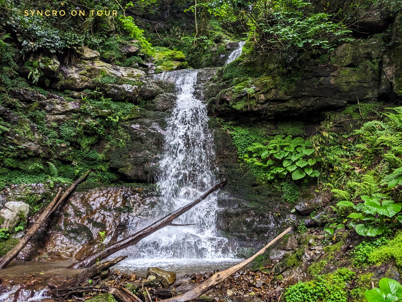 Weiter gings die Straße rauf, immer dem Bach folgend. Die Besonderheiten am Weg waren alle schon ziemlich von Ausflüglern belagert. Die alte Brücke haben wir uns erst auf der Rückfahrt angeschaut; am Wasserfall, der direkt an der Straße liegt, haben wir erst einmal einen kleinen Fußmarsch den Berg hoch gemacht. Als nicht mehr so viel los war, haben wir direkt am Wasserfall unseren Kaffee und sehr leckeres Gebäck genossen.