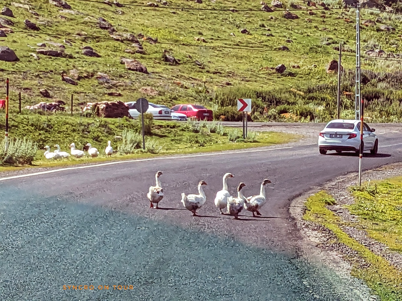 Hier wird vor allem Viehzucht betrieben. Ab und zu sehen wir kleine Äcker, sonst eher Rinder, Ziegen und Schafe. Auch Gänse laufen uns über den Weg.