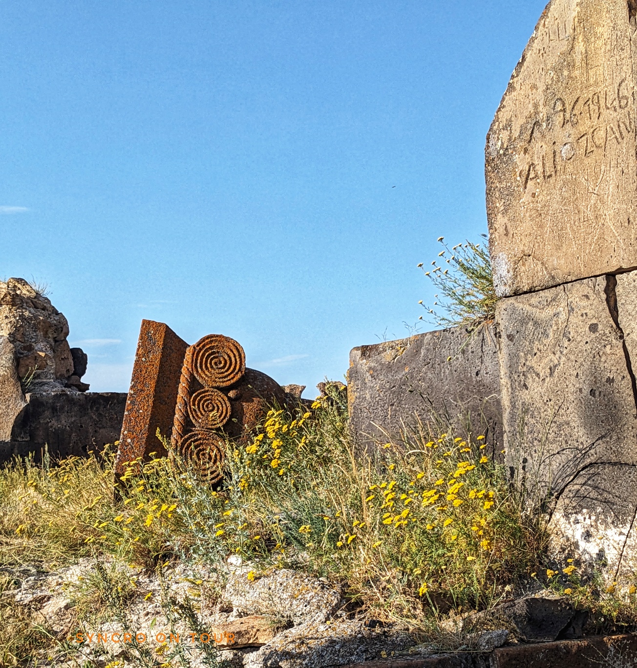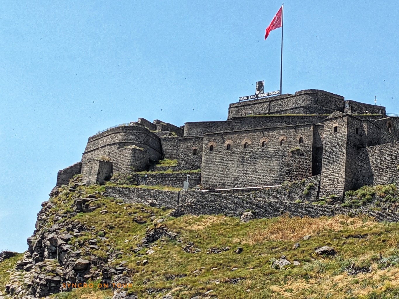 Draußen begegnete uns ein Mann, der in Antwerpen lebt und mit uns nur auf Französisch reden konnte. Er sprach uns an und fragte uns allerlei. Es kam heraus, dass er Armenier ist und einmal dieses Land besuchen wollte, dass eigentlich den Armenien gehört und seit dem schrecklichen Genozid und der Landnahme durch die Türken 1920 auf dem Gebiet der Türkei liegt. Er war nicht glücklich und sagte, er würde am liebsten nur weinen. Er war ungehalten darüber, dass dieser Ort nun als Touristenattraktion vermarktet wird.