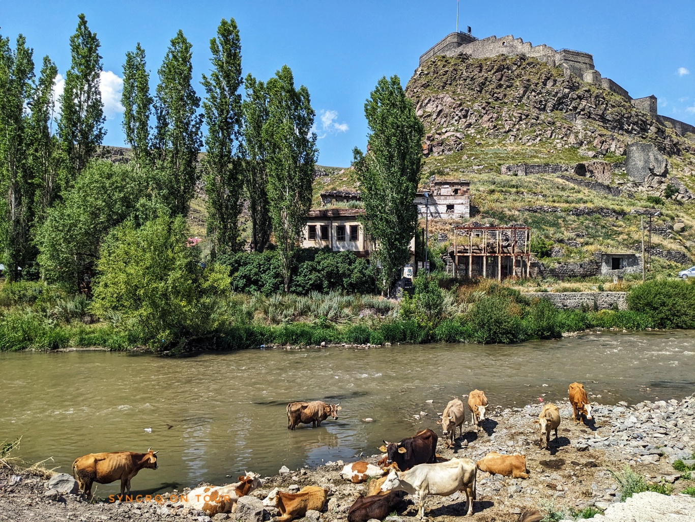 Wir hatten genug von der Hitze und der schönen Stadt Kars. Wir fuhren durch das schöne Flusstal hinter der Festung. Der Weg war leider eine Sackgasse. So hatten wir die Landschaft zweimal.
