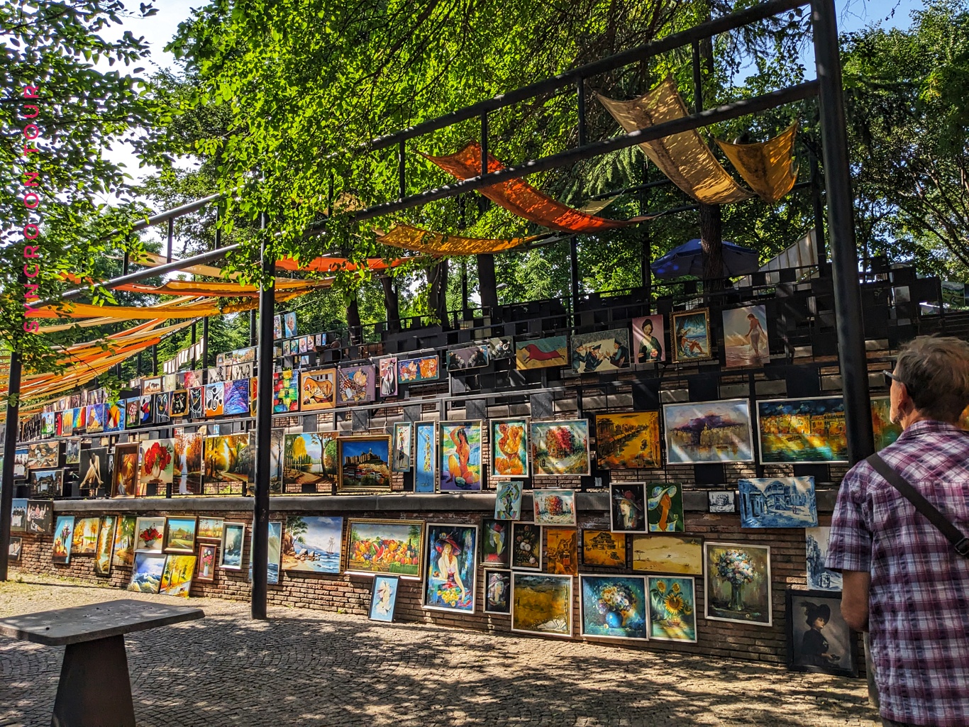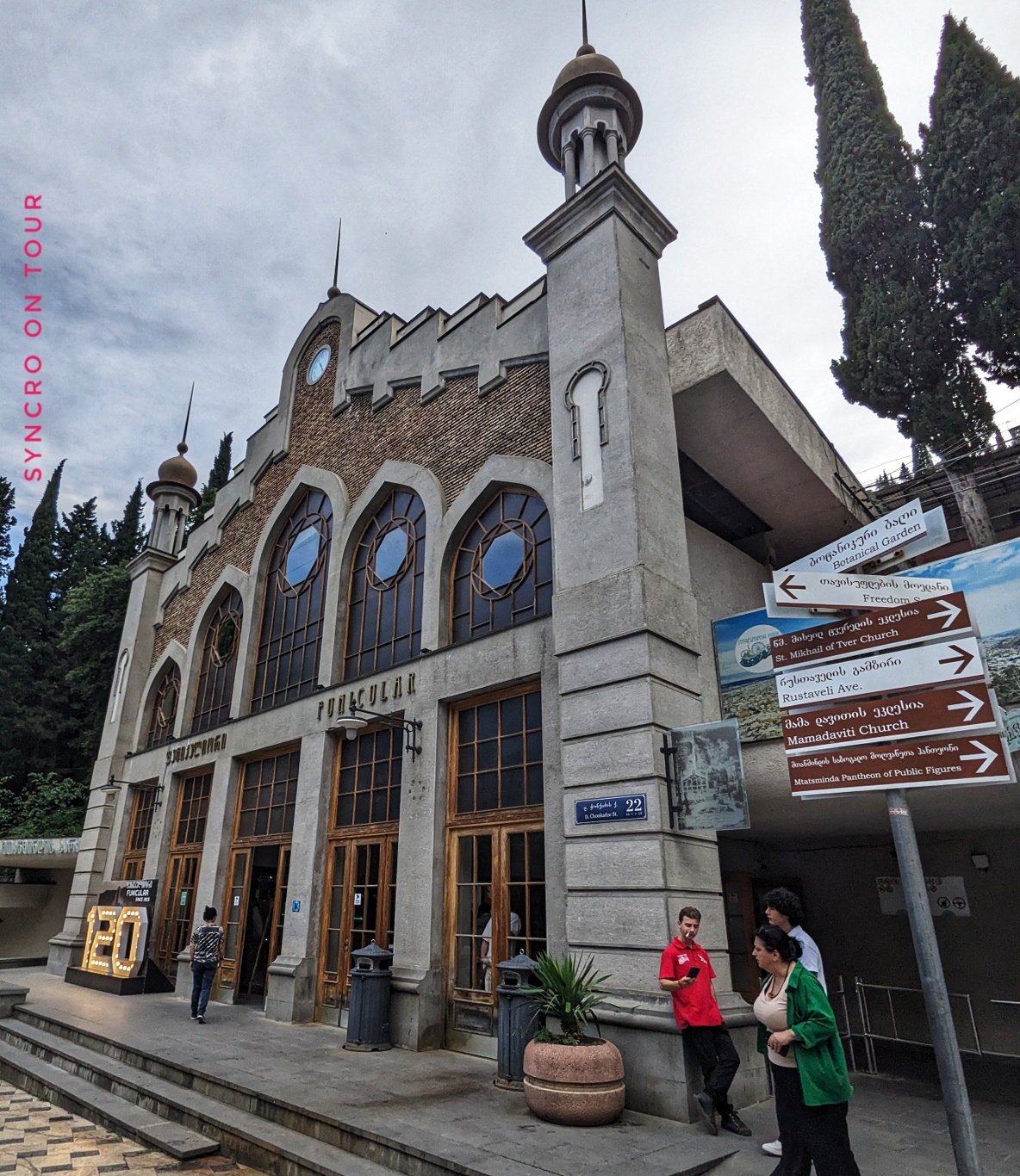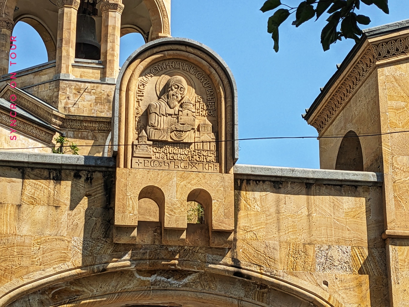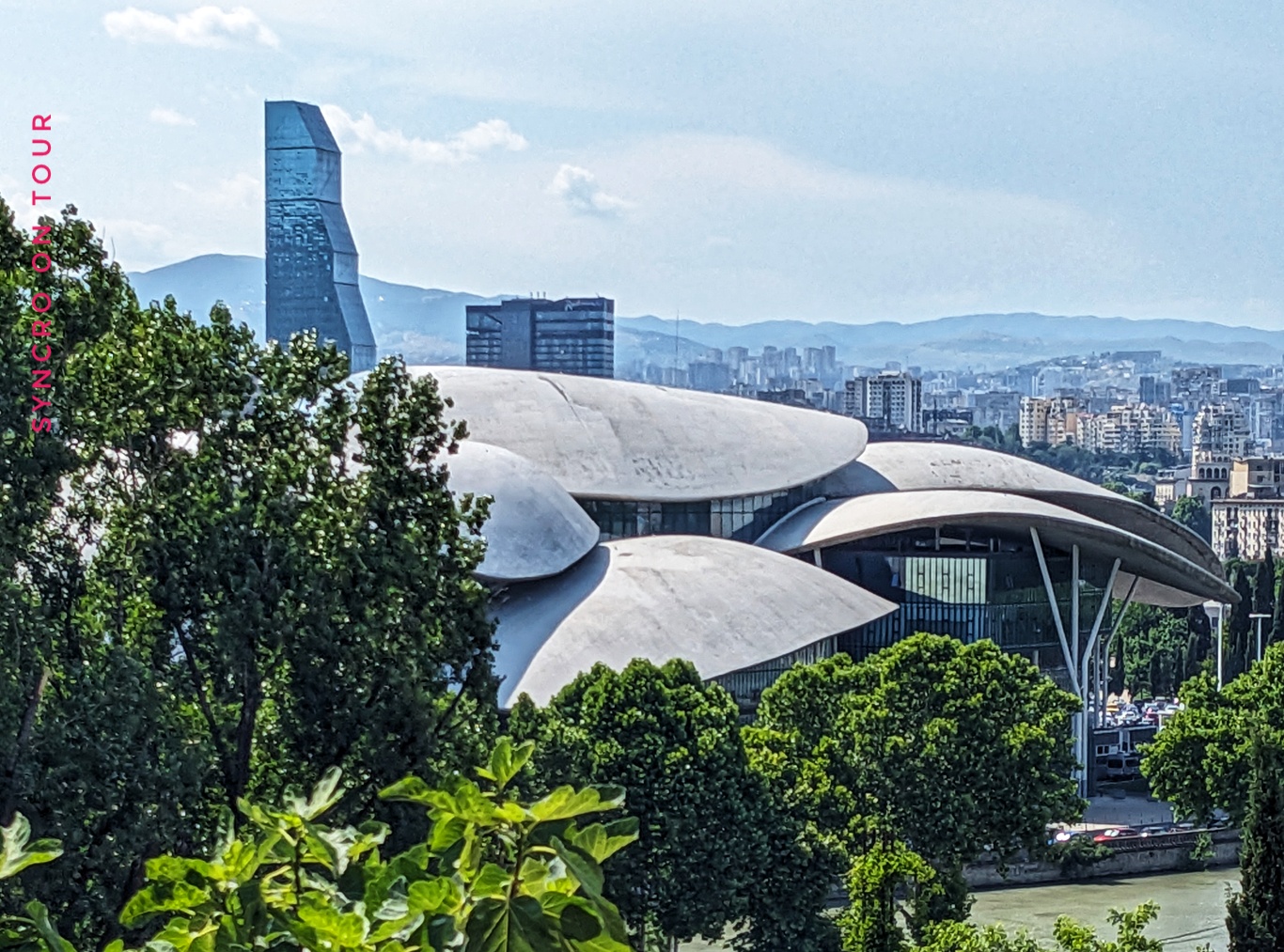 Wir machten uns erst am Nachmittag wieder auf den Weg in die Stadt. Wir ließen uns treiben und entdeckten so den Flohmarkt an der „Dry Bridge“ und ein kleines Lokal, das schöne schattige Sitzgelegenheiten bot. Dort tranken wir etwas Kühles und lauschten der Musik des Stehgeigers. Anschließend kamen wir durch einen Park immer weiter hinauf in Richtung Mtatsminda-Park. Wir mussten nicht den ganzen Weg auf diesen Berg kraxeln, die Funikolare nahm uns mit hinauf. Von dort sind wir in einem großen Bogen immer zwischen Büschen und Blumen bis zur anderen Seite der Altstadt gelaufen. Dort steht die zwanzig Meter hohe Statue „Kartvlis Deda“ (Mutter von Georgien), die von fast jedem Punkt der Stadt zu sehen ist. Von dort ging es noch einmal eine Menge Stufen hinunter in die Stadt. Am Horizont sahen wir dunkle Wolken aufziehen, so dass wir uns etwas beeilten, um zurück zum Bus zu kommen, der ja noch einmal eine Menge Stufen oberhalb des andern Ufers der Kura liegt.