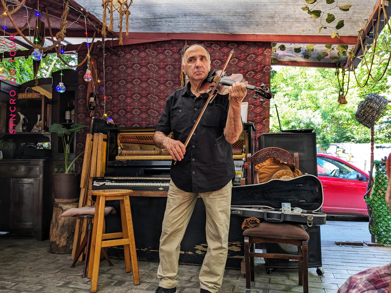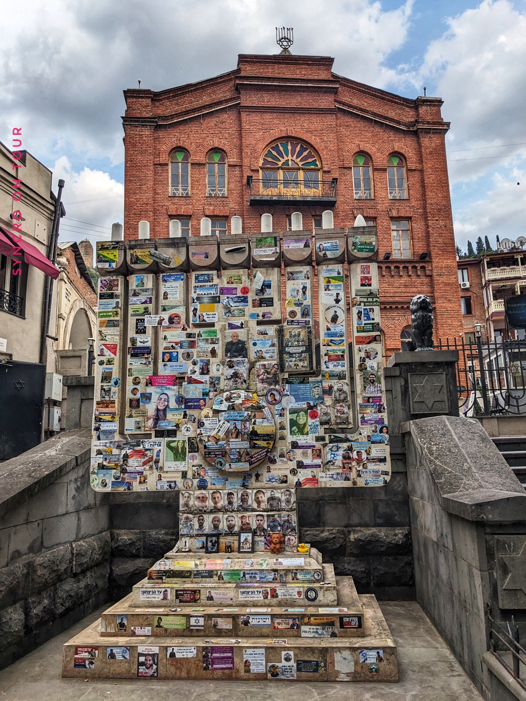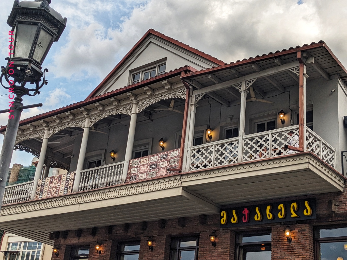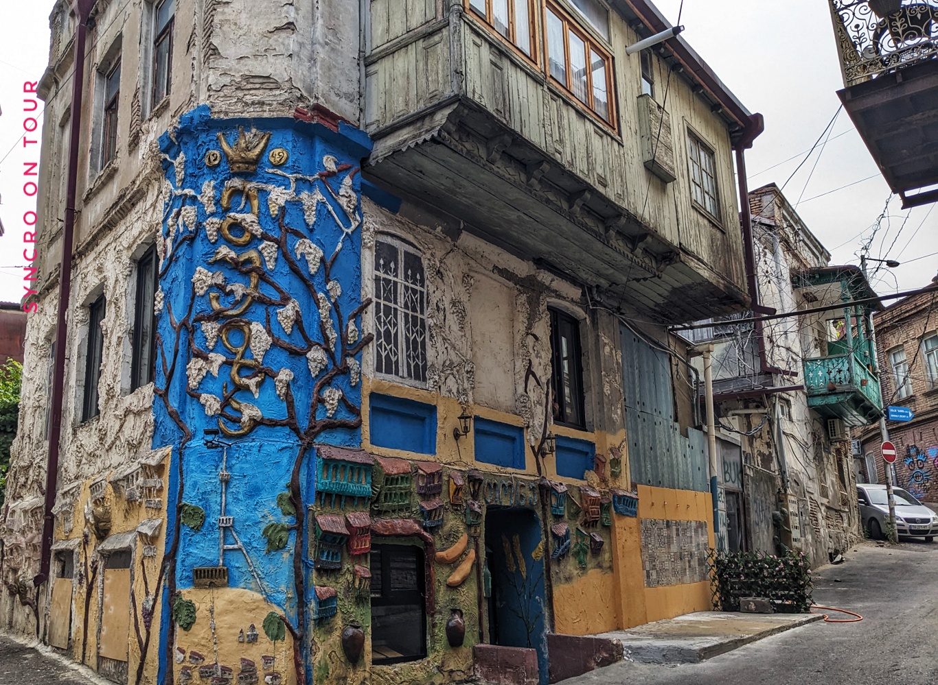 Wir machten uns erst am Nachmittag wieder auf den Weg in die Stadt. Wir ließen uns treiben und entdeckten so den Flohmarkt an der „Dry Bridge“ und ein kleines Lokal, das schöne schattige Sitzgelegenheiten bot. Dort tranken wir etwas Kühles und lauschten der Musik des Stehgeigers. Anschließend kamen wir durch einen Park immer weiter hinauf in Richtung Mtatsminda-Park. Wir mussten nicht den ganzen Weg auf diesen Berg kraxeln, die Funikolare nahm uns mit hinauf. Von dort sind wir in einem großen Bogen immer zwischen Büschen und Blumen bis zur anderen Seite der Altstadt gelaufen. Dort steht die zwanzig Meter hohe Statue „Kartvlis Deda“ (Mutter von Georgien), die von fast jedem Punkt der Stadt zu sehen ist. Von dort ging es noch einmal eine Menge Stufen hinunter in die Stadt. Am Horizont sahen wir dunkle Wolken aufziehen, so dass wir uns etwas beeilten, um zurück zum Bus zu kommen, der ja noch einmal eine Menge Stufen oberhalb des andern Ufers der Kura liegt.