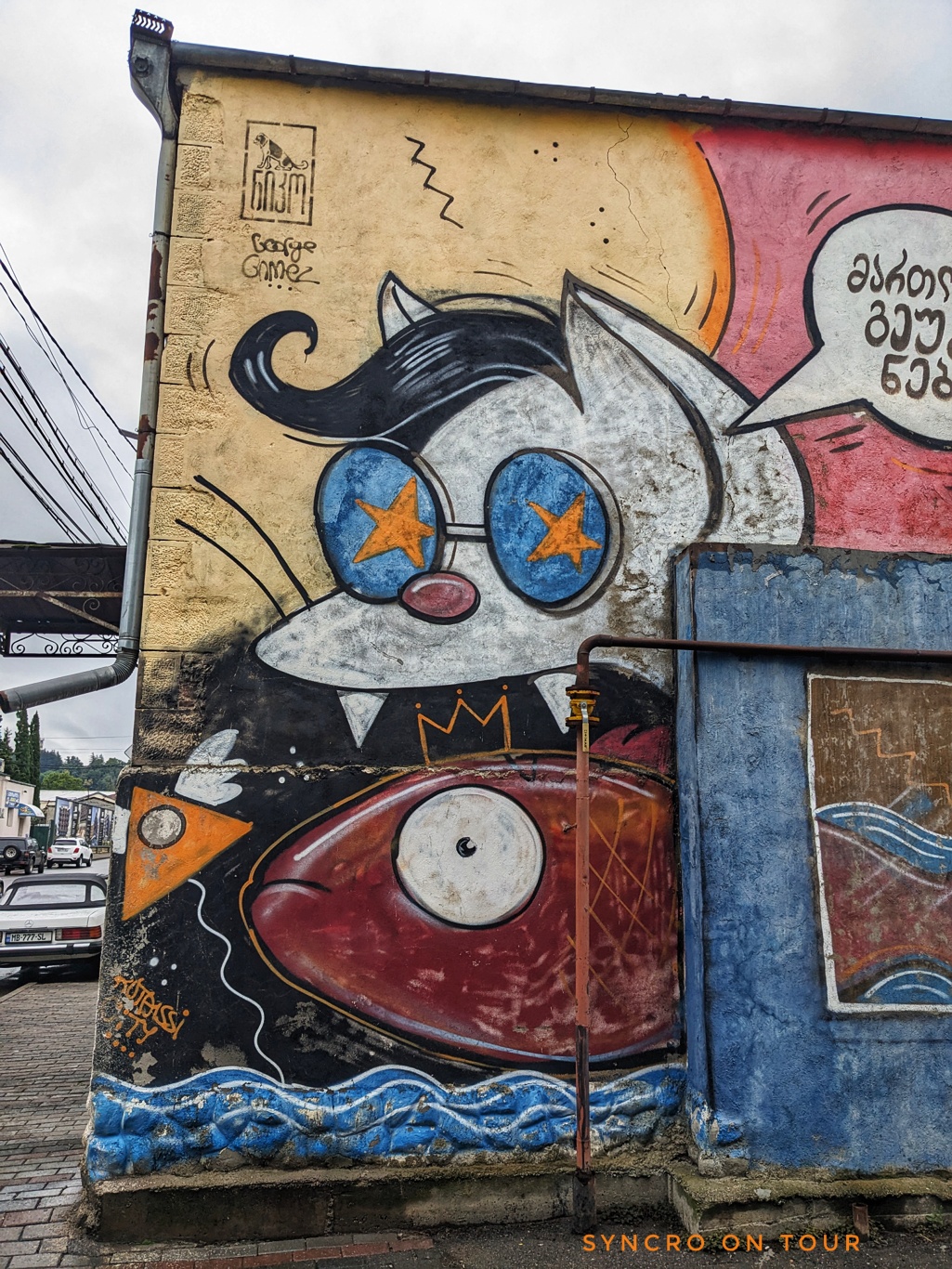Unterwegs finden wir Graffiti und ein deutsches Sprachenzentrum.