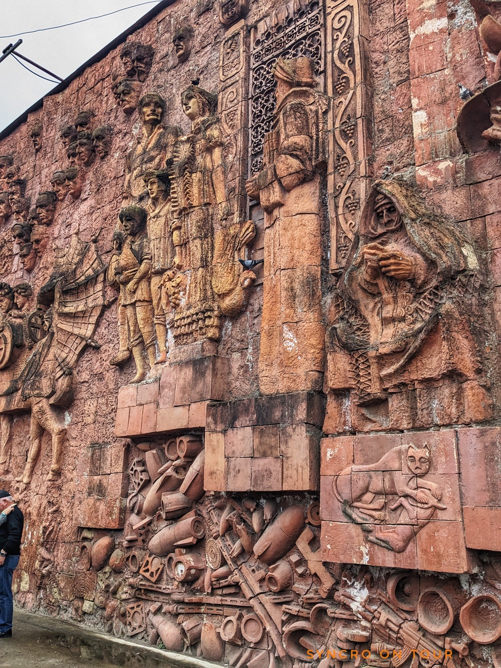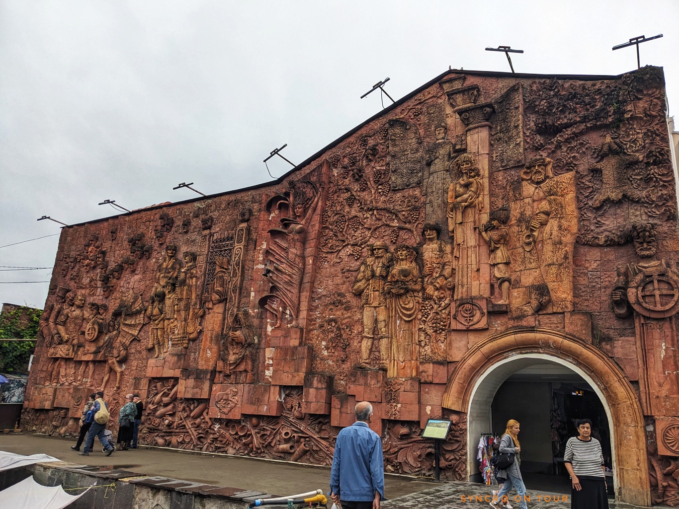 Als wir zur verspäteten Mittagspause wieder in unserem Bus sitzen, schauen Pavel, Iris, Sibille und Rüdiger übers Tor. Sie sind gerade erst angekommen und haben ihre Dickschiffe auf einem Parkplatz in der Nähe geparkt. Sie wollen jetzt die Stadt erkunden. Wir verabreden uns für den Abend im nahegelegenen Restaurant. Das wird der Abschied von Pavel und Iris, die wegen eines Problems an der Lenkung zu einer Vertragswerkstatt nach Trabzon in der Türkei fahren müssen. Danach werden sie zurück nach Deutschland fahren. Sibille und Rüdiger fahren morgen Richtung Ushguli. Vielleicht sehen wir uns dort noch einmal.