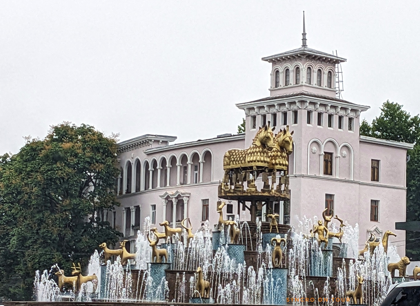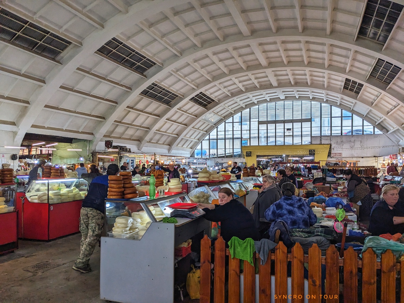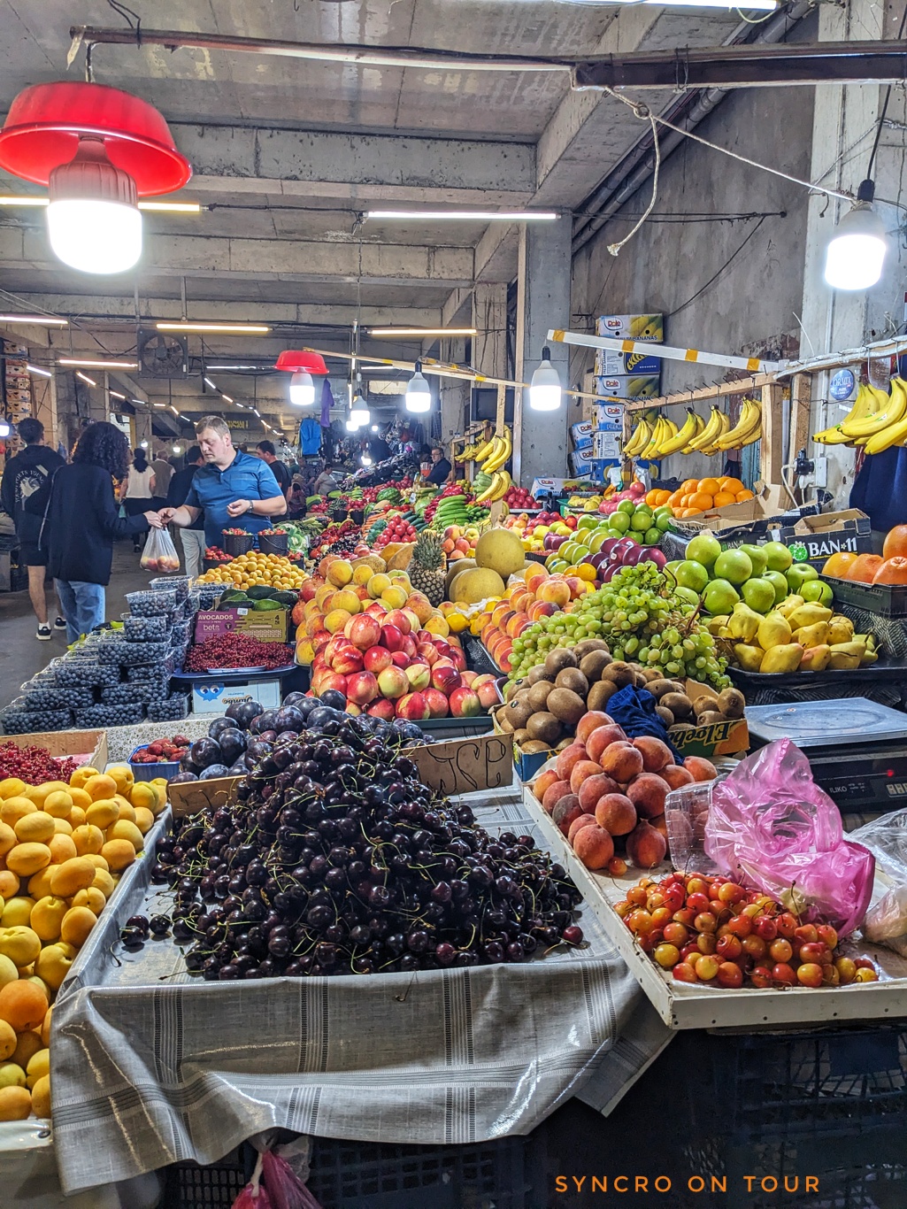 Wirklich sehenswert ist der große Markt, der unterirdisch und auf Straßenniveau alles anbietet, was mensch so braucht. Vor allem frisches Gemüse, Obst, Käse, Fisch, Fleisch, Gewürze. Wir können bei den dicken Knubberkirschen nicht nein sagen und kaufen uns auch zwei Tütchen vom svanetischen Gewürzsalz, das uns von Kirsten vor drei Tagen wärmstens empfohlen wurde. Michael findet einen Bäcker, der Sesamringe verkauft. Er beißt schon auf der Straße in den ersten hinein und erweckt damit die Aufmerksamkeit aller Straßenhunde.
