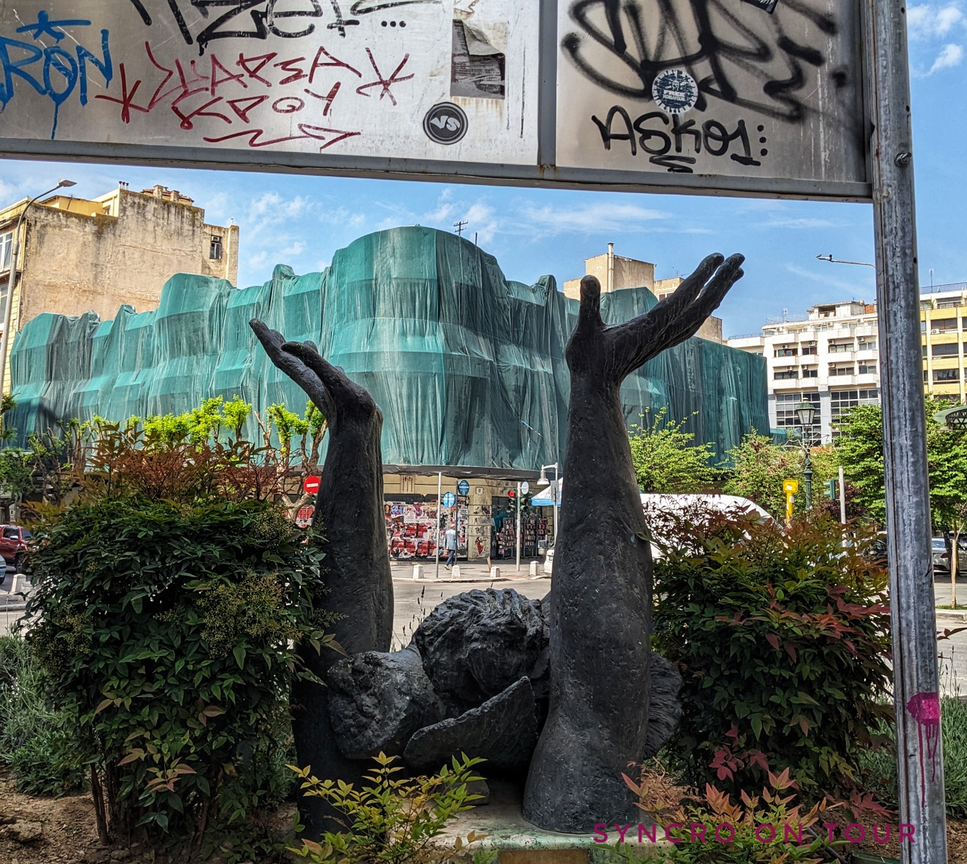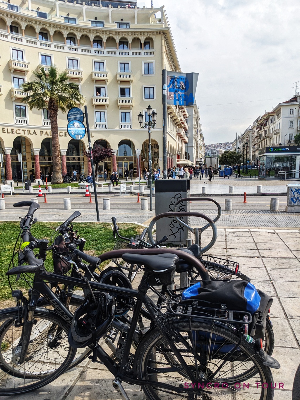 Obwohl Thessaloniki heute im Morgendunst verschwunden schien, bekamen wir Lust, die Stadt mit unseren Fahrrädern zu besuchen. Für so etwas hatten wir sie schließlich mitgenommen.