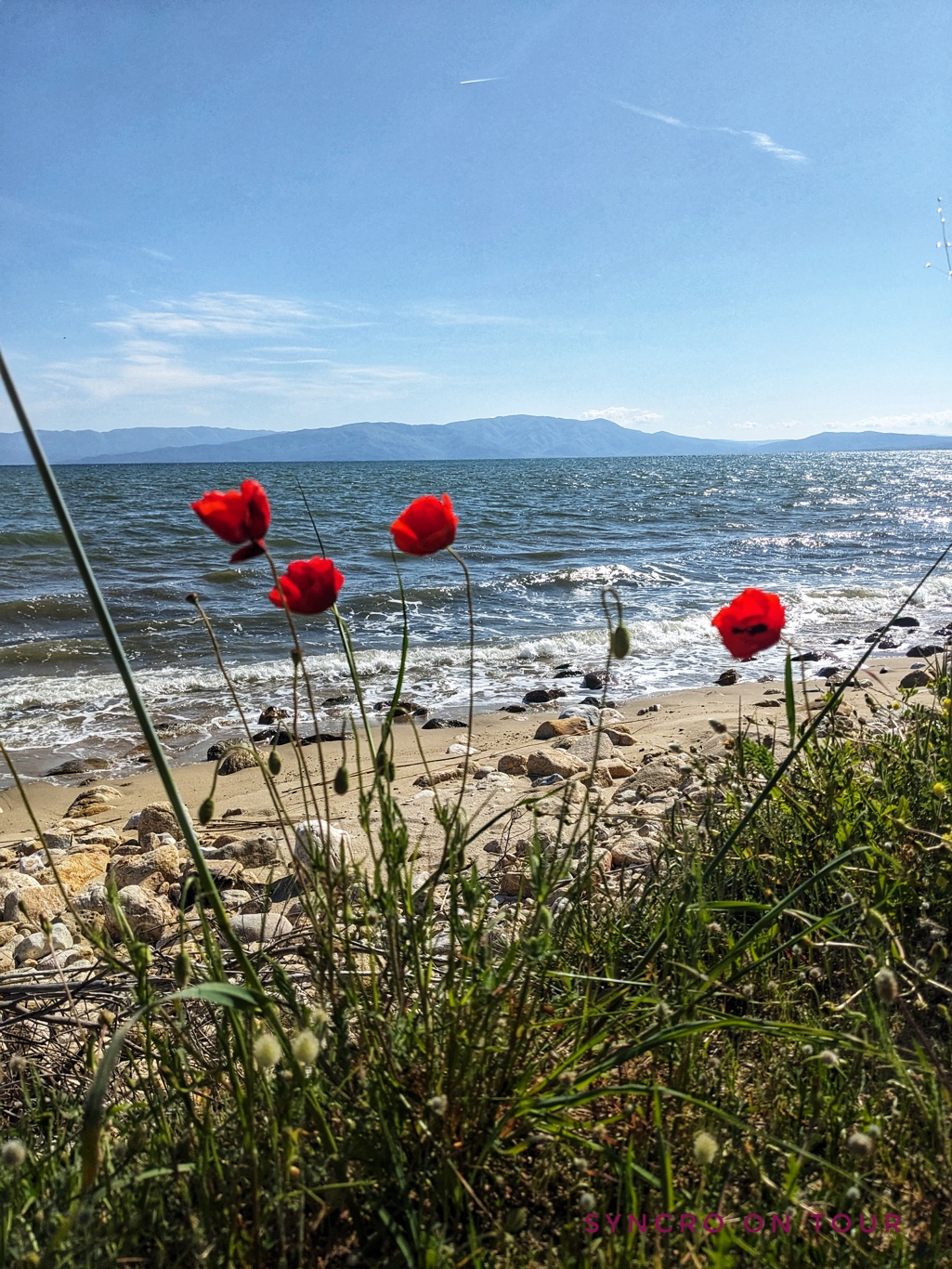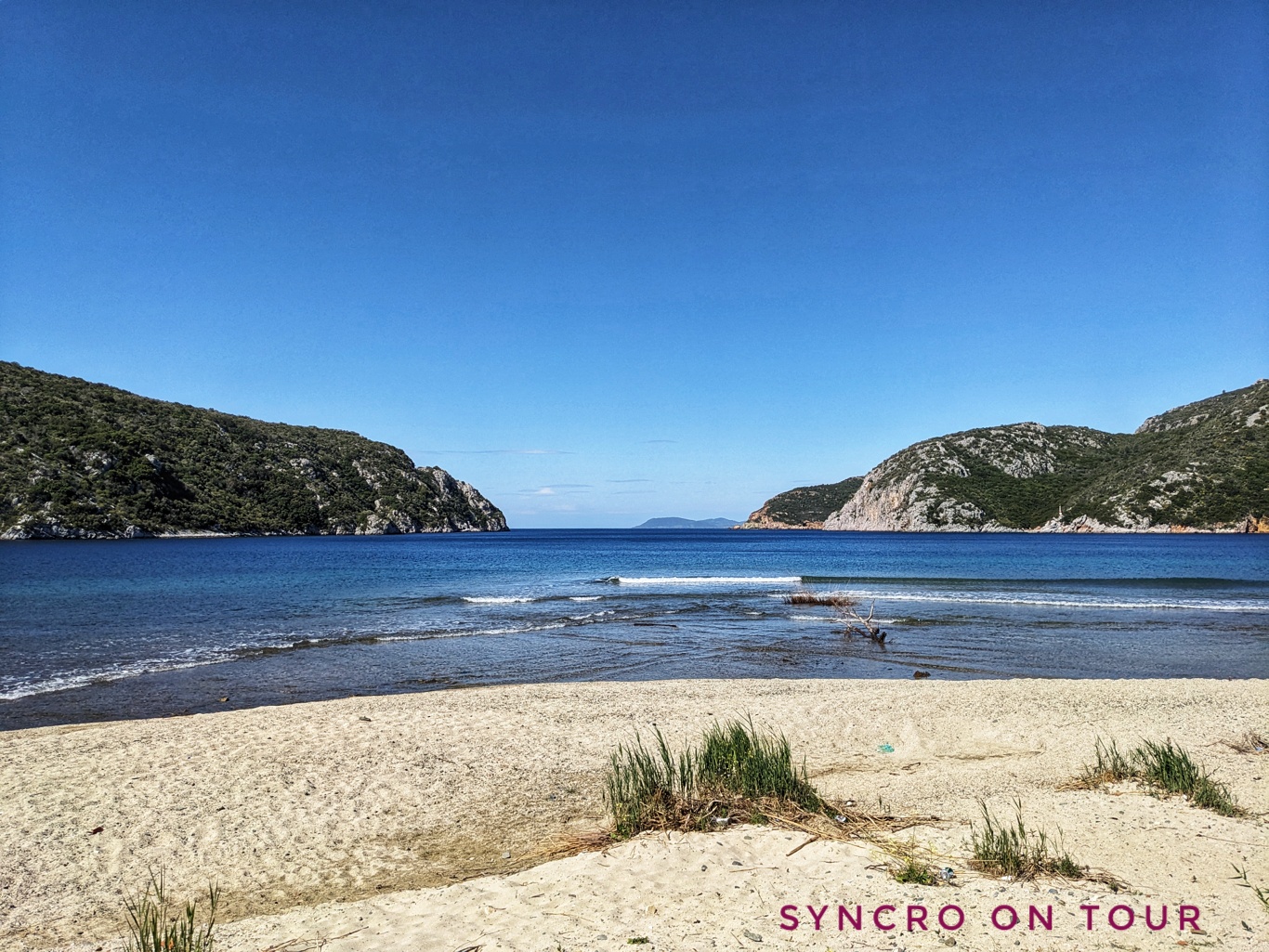 Ansonsten sind wir heute weiter um den mittleren Finger Sithonia gefahren. Es ist einfach eine prachtvolle Landschaft, vor allem jetzt im Frühling. Alles ist kräftig grün und frisch und überall wogen tiefrote Mohnblumen zusammen mit weißen Kamillenblüten und gelben Pflanzen, deren Namen ich nicht kenne.
