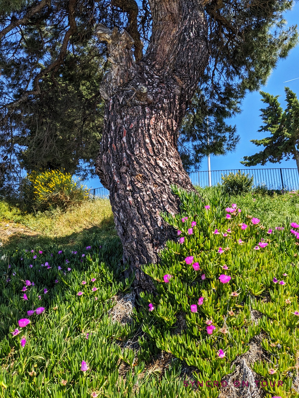 Was ich noch erzählen muss: Gestern kamen wir in dem hübschen Ort Sarti an einer langen Mauer vorbei, auf der die Silhouetten von vielen Menschen abgebildet sind. Ein langer Zug von Flüchtlingen? Am Anfang eine Inschrift. Ich habe mich ein wenig informiert, unter anderem auch mit Hilfe von KI. Hier die Antwort von Perplexity: