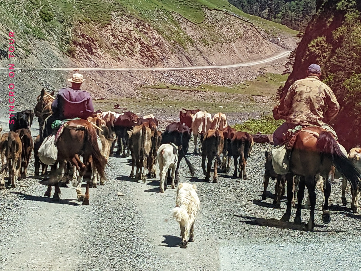 Heute versuchen wir noch einmal, was uns letzten Freitag nicht gelungen ist. Diesmal überqueren wir den Abano-Pass mit einem sauberen Luftfilter und fahren ins Land der Tuschen, auch Tuschetien genannt. Eigentlich ein eigenes Volk mit eigener Sprache sind die Tuschen vor langer Zeit schon nach Georgien eingegliedert worden. Das Hochtal ist nur durch eine Straße zu erreichen, die sehr schwierig zu fahren ist und wohl auch als gefährlich gilt. Die Tuschen leben im Winter unten vor den Bergen in den Orten Kvemo Alvani und Zemo Alvani. Im Sommer ziehen sie wieder nach oben. Die Kühe werden auch mit hoch getrieben. Mittlerweile leben die Tuschen wohl auch vom Tourismus.