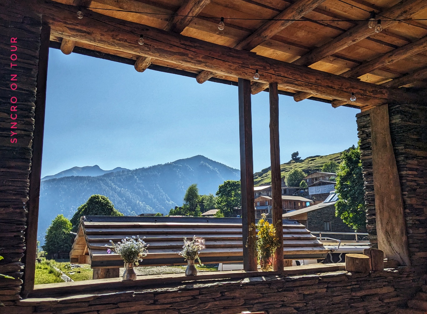 Wir machen halt in Omalo, um einen Kaffee zu trinken. Die Gästehäuser, die es hier in großer Zahl gibt, bieten oft auch Getränke und Speisen an. Außerdem sind sie meist urgemütlich eingerichtet und verkaufen nebenbei auch noch Socken, Handschuhe und Mützen.