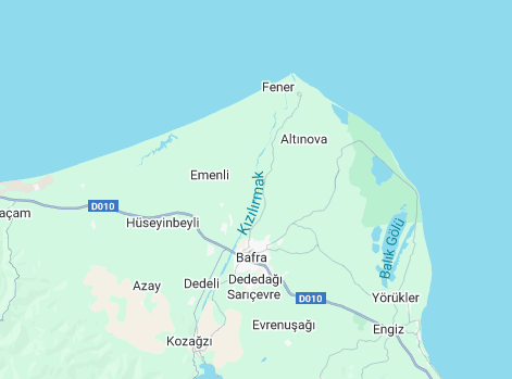 Auf einmal sahen wir Felder, die unter Wasser standen. Das könnten Reisfelder sein, dachten wir uns. Eine kleine Unterhaltung mit Chatgpt bestätigte unsere Annahme. Wir waren im Mündungsdelta des Kizilirmak bei Bafra. Hier wird unter anderem Reis angebaut, aber auch Tabak und viele andere Feldfrüchte. Die Parallele zum Podelta drängte sich auf. Plötzlich gab es Störche, die hinter den Traktoren herstolzierten. Wir wollten hier nicht achtlos weiterfahren. Also wurde es ein „Umweg“, wir sagen lieber Abstecher von fast 50 Kilometern. Aber der hat sich gelohnt. Wir sind ganz in die Nähe der Stelle gefahren, wo der Fluss ins Meer mündet. Auf der Karte sieht das Delta aus wie ein riesiger Busen. Wir waren dann ganz vorne bei Fener Deniz. Schaut mal auf die Karte.