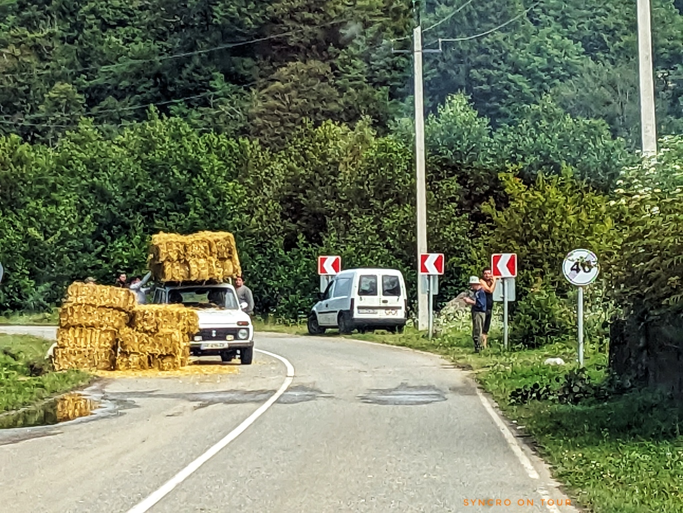 Danach ging es durch ein enges Tal bis Lentekhi. Dort haben wir eingekauft und getankt. Wer weiß, was uns oben erwartet.