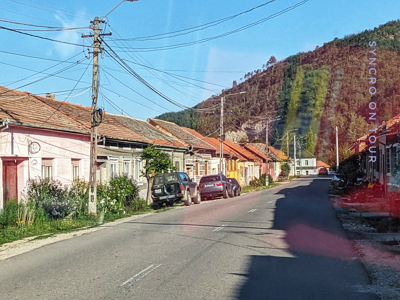 Die gesamte Strecke war sehr schön. Wir starteten an der Donau mit Blick auf das serbische Ufer, fuhren durch schattige Wälder, kamen durch traditionelle Dörfer und größere Städte, in denen früher Bergbau betrieben und Eisenerz verarbeitet wurde. Die Häuser waren teilweise sehr aufwändig verziert. In dieser Gegend Rumäniens fanden wir Straßendörfer vor, deren Häuser nicht mit der Giebelseite zur Straße standen, sondern mit der Traufe nach vorn ohne Abstand gebaut waren. Das ist also regional unterschiedlich.
