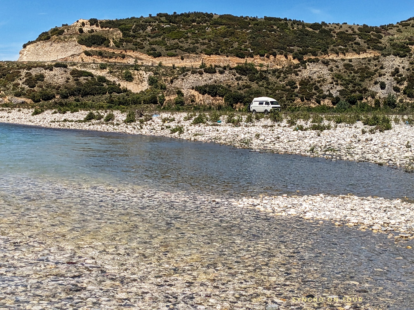 Gegen 11 Uhr fahren wir ins Tal der Vjosa, der Fluss, der seit 2023 Weltkulturerbe ist, als der letzte Wildfluss Europas. Wir fahren den ganzen Tag an ihm entlang, machen unsere Mittagspause direkt im Flussbett und finden am Nachmittag unseren Stellplatz für die Nacht in traumhaft schöner Bergkulisse.