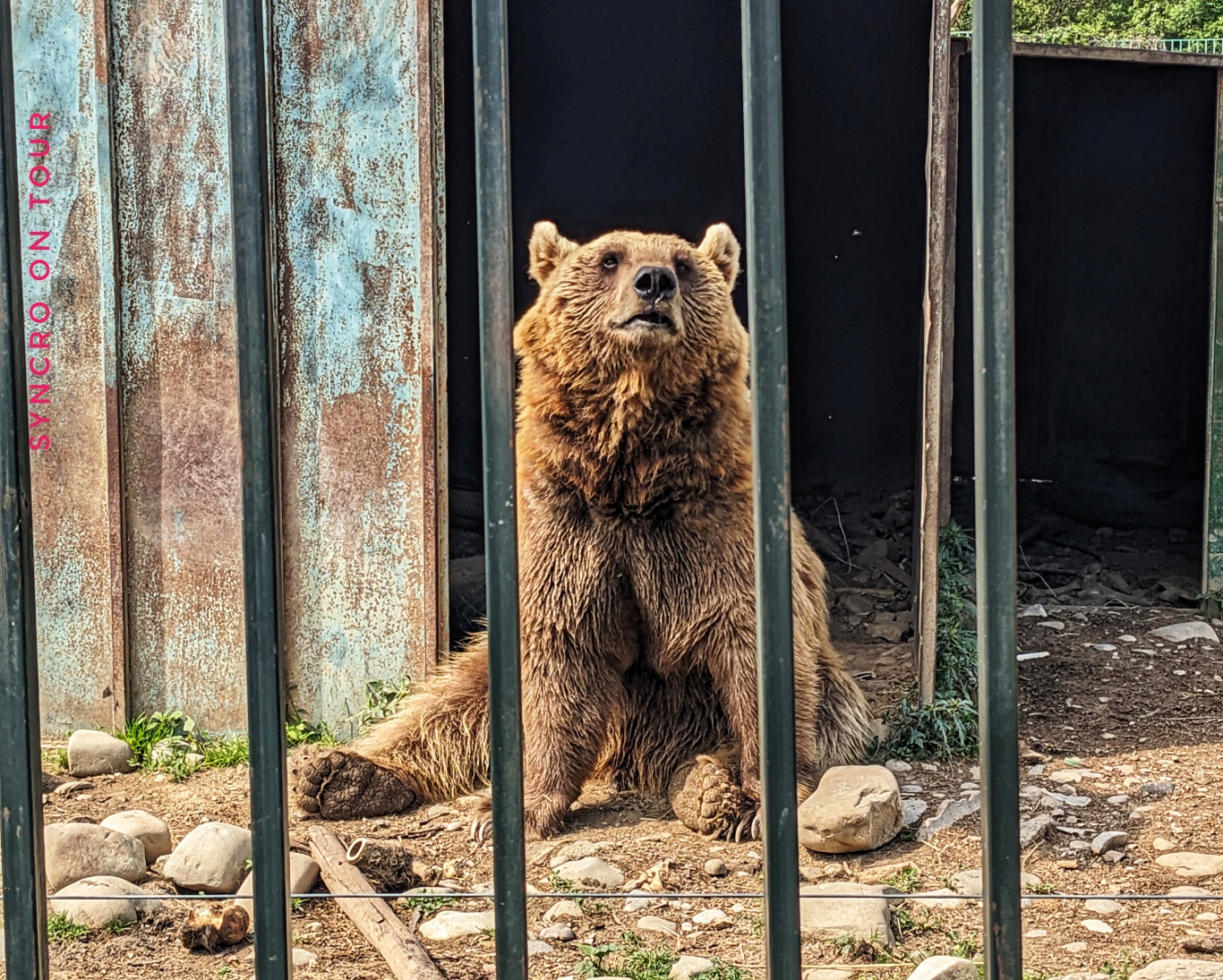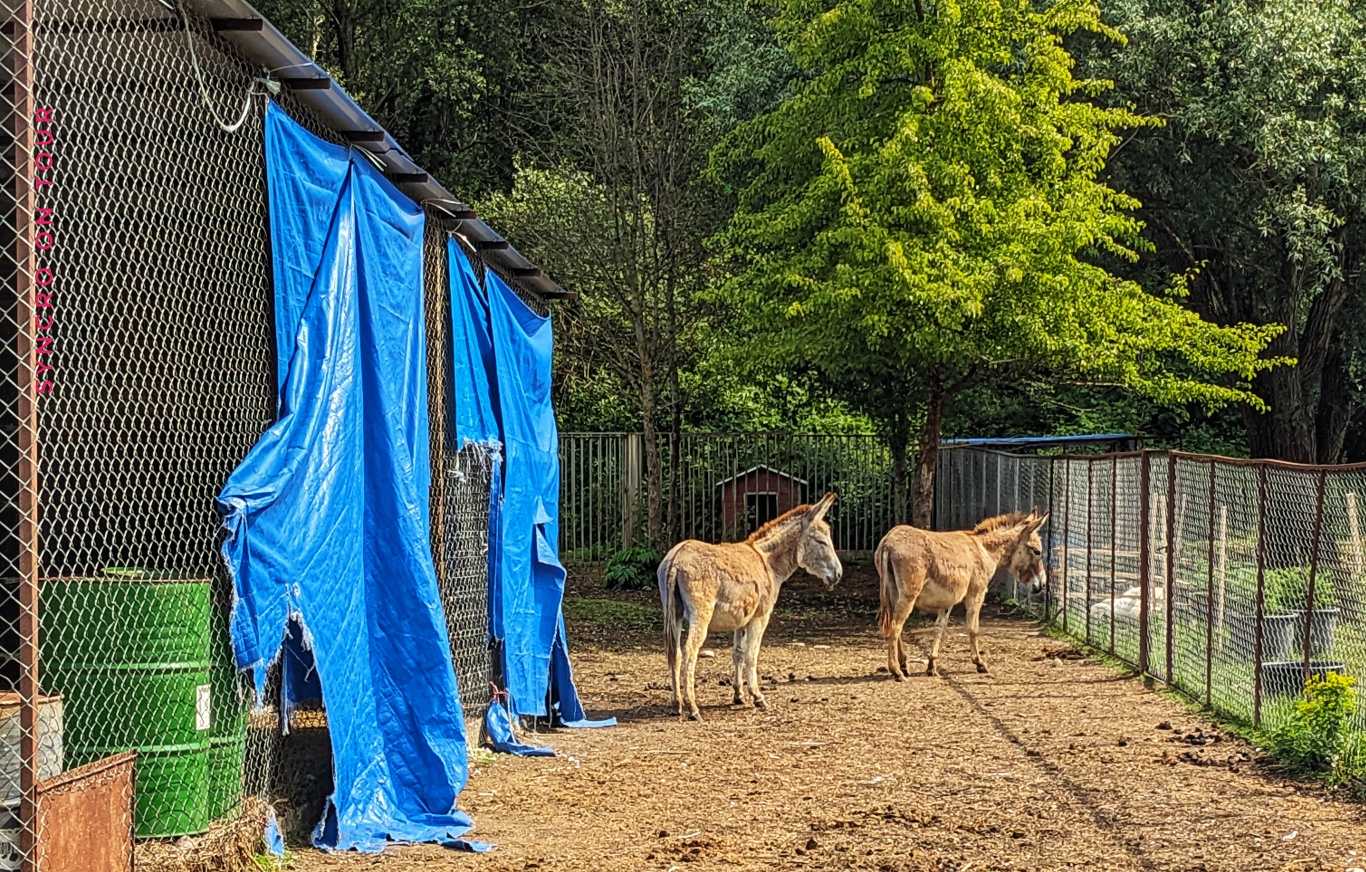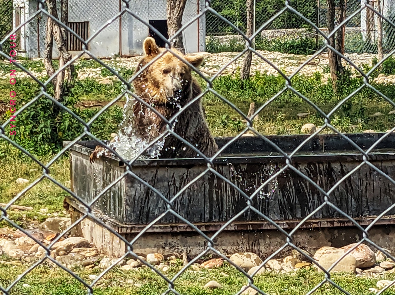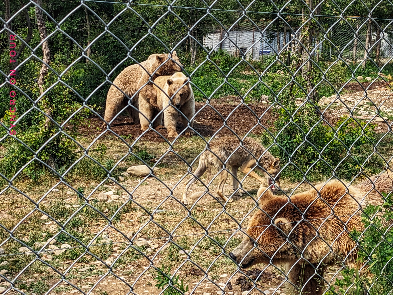 An einer Quelle hielten wir an, um unseren Wassertank aufzufüllen. Wir es der Zufall wollte, war auf der anderen Straßenseite die Einfahrt zu einer Bärenauffangstation. So etwas hatten wir noch gar nicht gesehen. Kurzerhand statteten wir diesem privat geführten Tierasyl einen Besuch ab. Hier gibt es nicht nur eine Menge Bären, sondern auch Wölfe und allerlei Haustiere, die auf die eine oder andere Weise Hilfe brauchen. Erst haben wir uns gewundert, dass Wölfe und Bären in einem Gehege sind, aber das ist gar kein Problem, weil die Bären sich von den Wölfen nichts gefallen lassen.