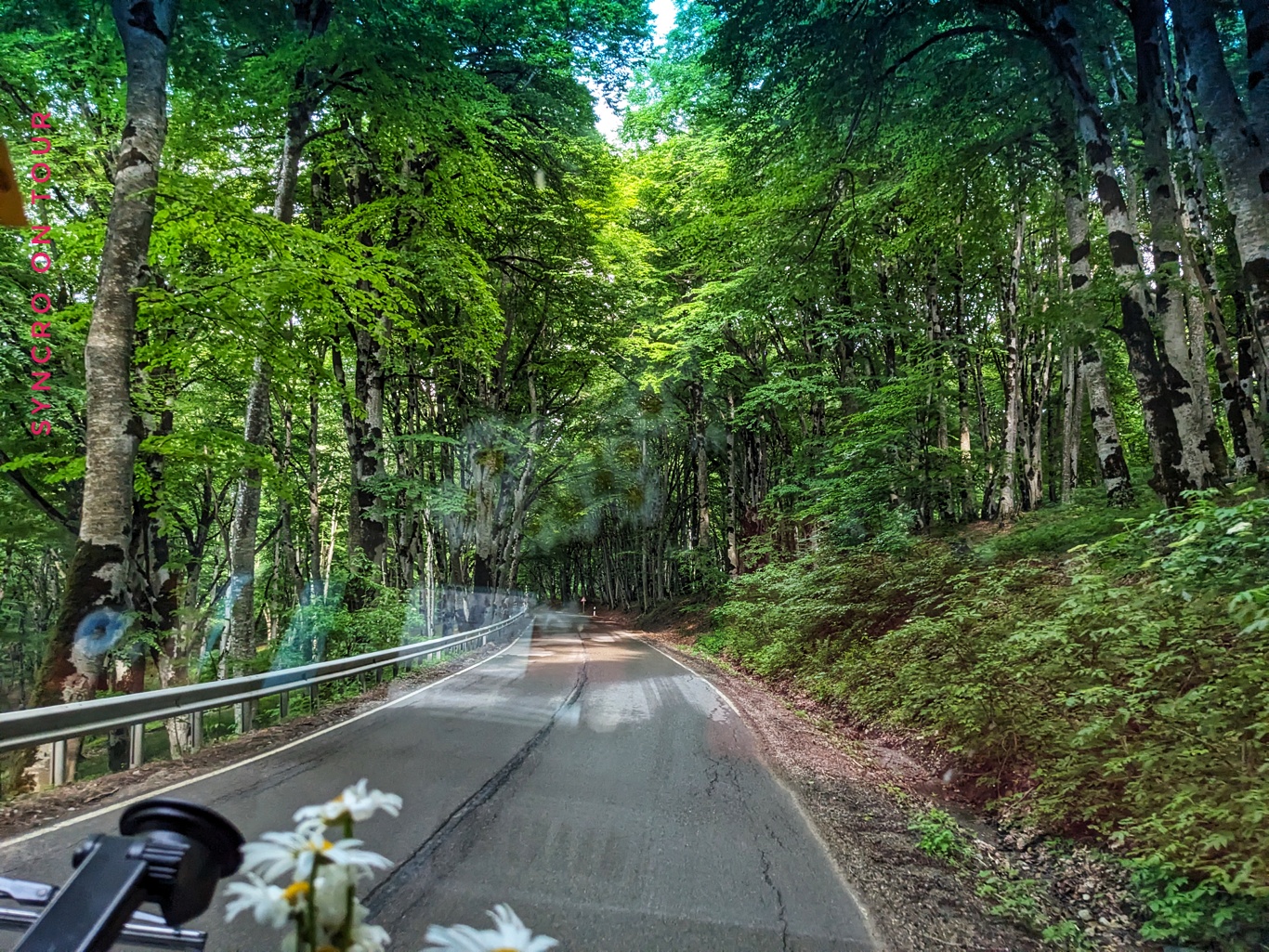 Außerhalb von Tiflis sind wir sehr schnell von der Schnellstraße abgebogen und wieder auf unsere geliebten kleinen Straßen gelangt. Es ging hinein in den Sabaduri-Wald, der vor allem aus hohen Buchen mit heller Rinde und großen dunklen Moosflecken besteht. Das ergibt eine ganz eigenartige Atmosphäre.
