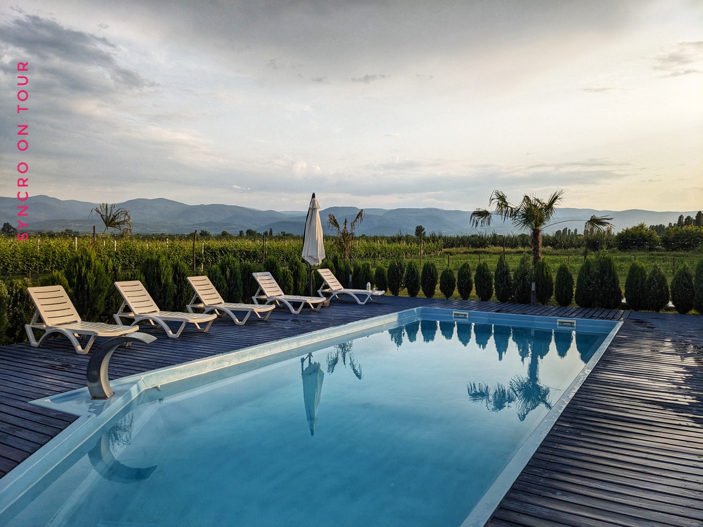 Nach weiteren 75 Kilometern waren wir endlich am letzten Ziel des Tages. Die Finca Idoize wird unser Domizil für die nächsten Tage. Nach so viel Fahrerei und Schwitzen haben wir eine längere Pause nötig. Und dieser kleine Campingplatz am Rande von Weingärten und mit Blick auf kleinen und großen Kaukasus ist wirklich perfekt.