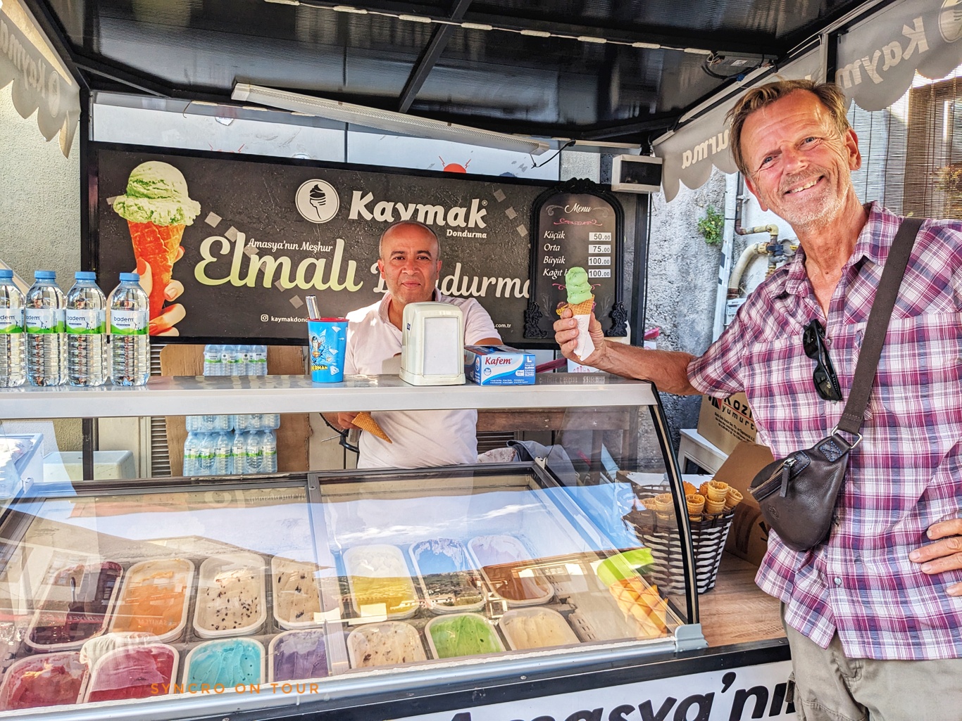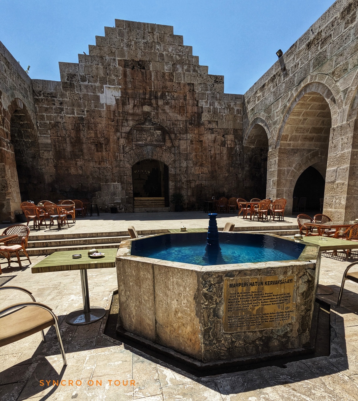 Auf unserem Weg nach Amasya kamen wir in Pazar vorbei, wo eine alte Karawanserei aus der Zeit von vor Christus steht. Da wir uns bei der Hitze, die schon wieder herrschte, sehr gut in die Situation damaliger Reisender hineinversetzen konnten, hielten wir an, um dort ein kühles Getränk zu uns zu nehmen.