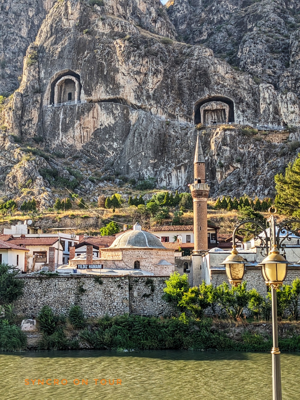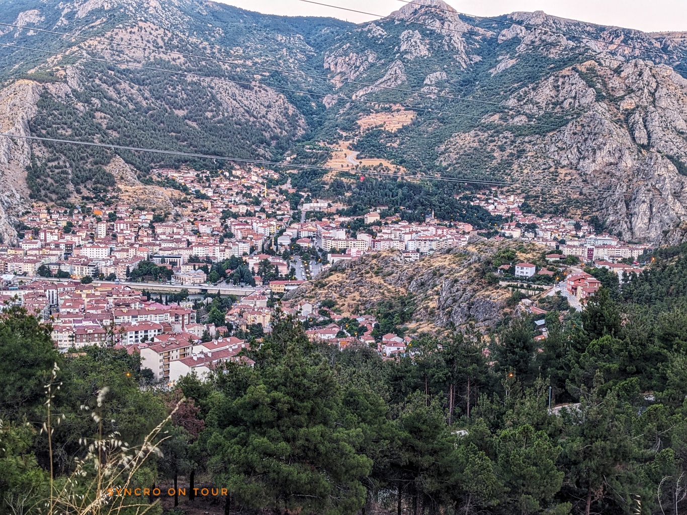 Gegen 16 Uhr sind wir die eineinhalb Stunden nach Amasya gefahren und haben uns in der Nähe der Altstadt auf einen überwachten Parkplatz gestellt. Vier Stunden Parkzeit kosteten gerade einmal 50 Cent.