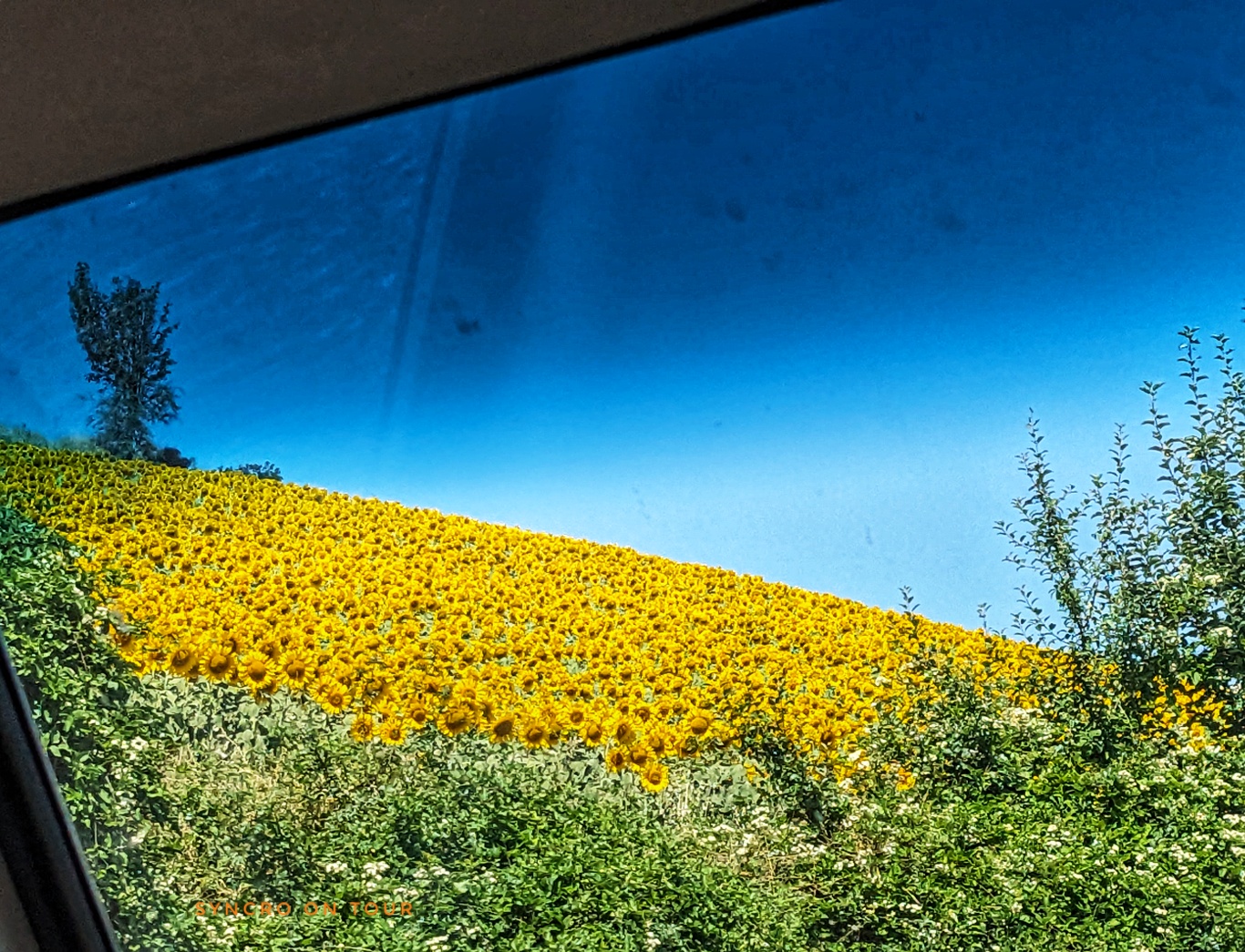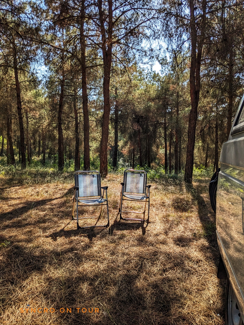Heute heißt unser einziges Ziel: der Hitze entkommen. Morgens fahren wir früh aus Amasya raus, tanken und gönnen dem Auto eine Wäsche. Dann geht es durch eine weite Landschaft mit hunderten von Sonnenblumenfeldern zur Talsperre bei Vezirköprü. Dort zahlen wir eine Kleinigkeit, um das Picknickgelände benutzen zu dürfen. Bis zum See runter kommen wir nicht, aber wir finden einen schattigen Platz unter Kiefern, ganz in der Nähe eines Brunnens. Hier erfrischen wir uns mehrmals. Ein wunderbarer Platz, allerdings mit einer kleinen Ausnahme: Die Zikaden in den Kiefern machen einen unvorstellbaren Krach. Wir haben zum Glück Kopfhörer dabei. Ich schalte Noise-Canceling ein und mische noch etwas Wasserplätschern dazu. Michael hört lieber Musik. So lässt es sich gut aushalten.