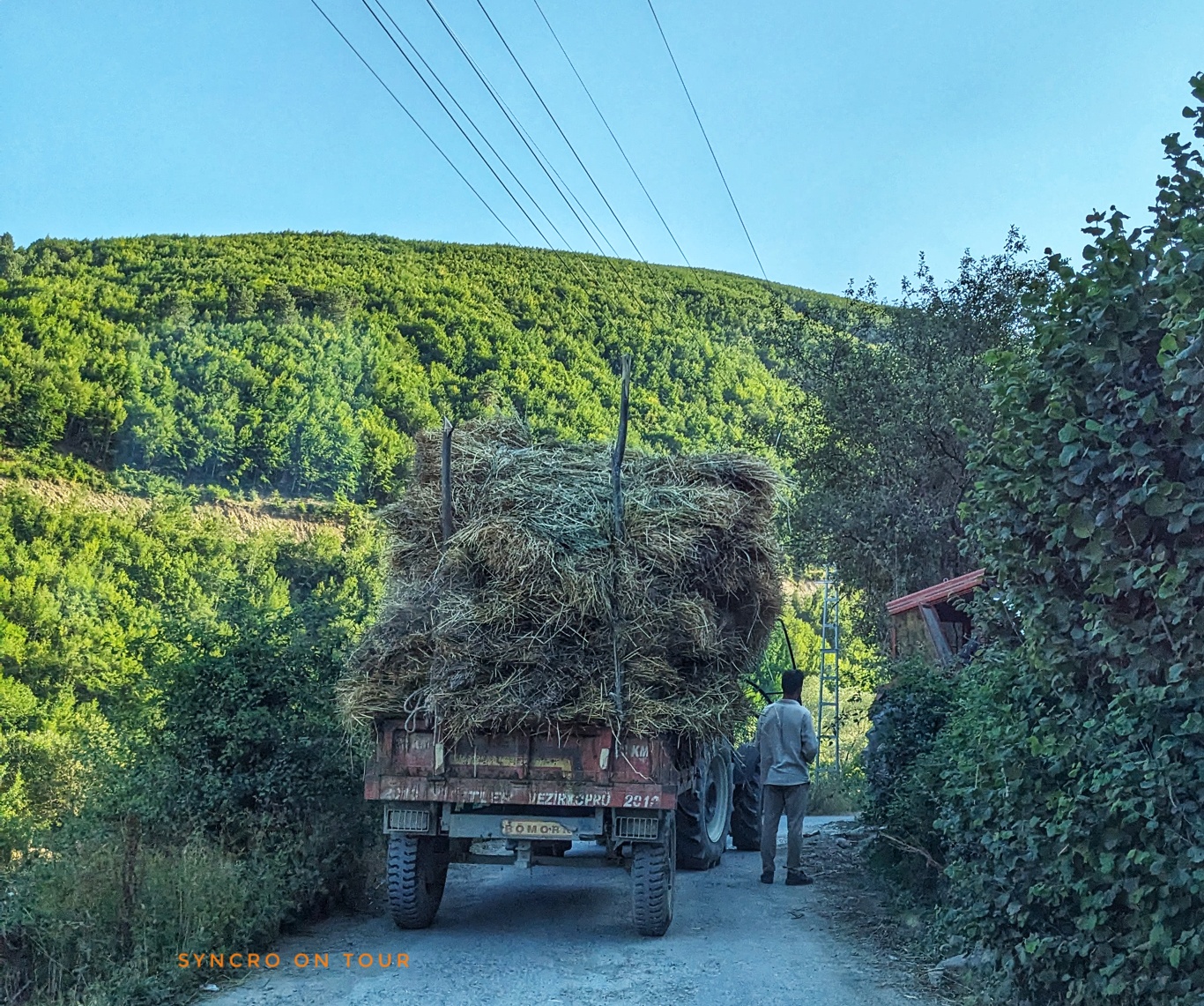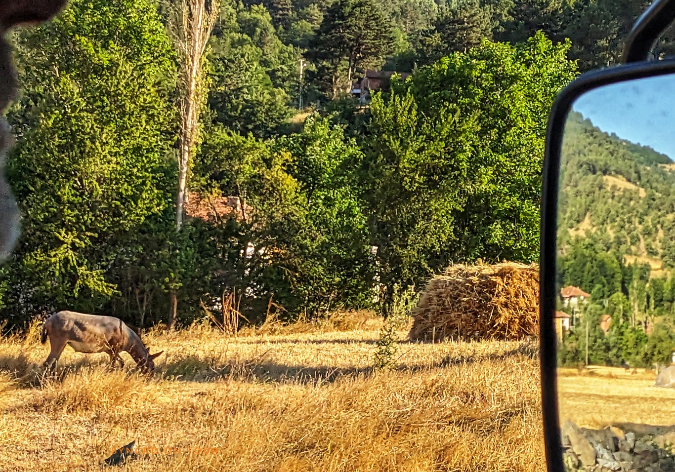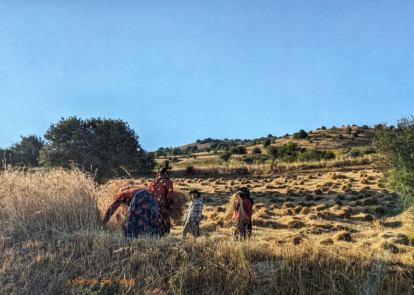 Wir nehmen den kürzesten Weg, den unser Navi anbietet. Er geht ziemlich geradeaus über Stock und Stein, durch Felder und kleine Dörfer. Hier ist gerade die Getreideernte in vollem Gange. Wir sehen Frauen und Kinder, die wie in Vorzeiten das Stroh mit der Sichel schneiden und zu Garben binden.