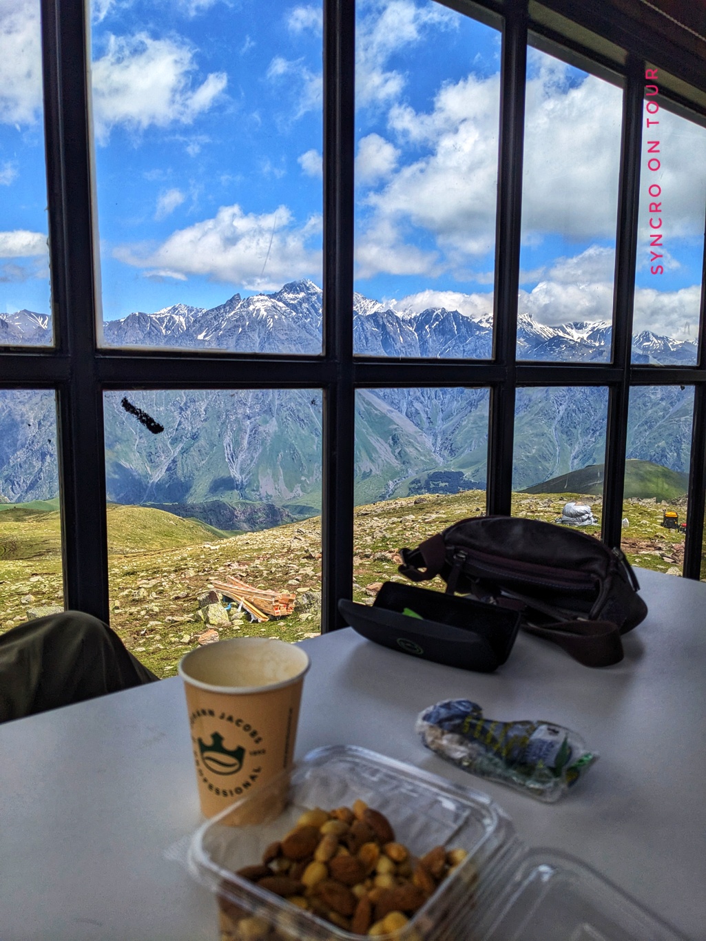 Auf 2940 Metern endete unser Aufstieg. Hier gab es ein Café mit Glasfenstern rundum. Auch die Toilette am Hang hatte ein großes Panoramafenster – Toilet with a View!