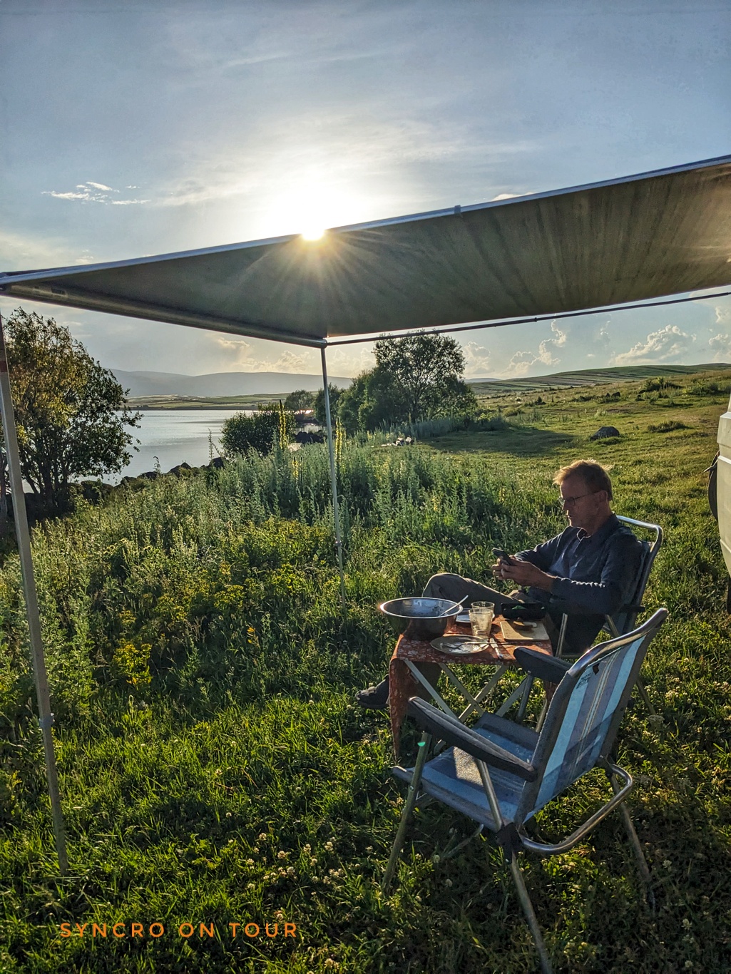 Vom Çıldır Gölü sind wir begeistert. Wir fanden direkt einen schönen Platz am Ufer, wo wir den Abend und die Nacht verbringen werden. Ein älteres Paar kam uns besuchen und bedankte sich bei uns, dass wir in die Türkei gekommen sind. Mit Englisch und ein bisschen türkisch erzählten wir uns gegenseitig, wer wir sind. Sie ist aus Azerbaidschan, er ist Türke. Sie arbeitet in Kars am Konservatorium. Ihr Deutsch war sehr schlecht, aber ein Schubertlied mit deutschem Text ging ihr ganz leicht aus der Kehle. Fantastisch, welche Begegnungen wir immer wieder haben.